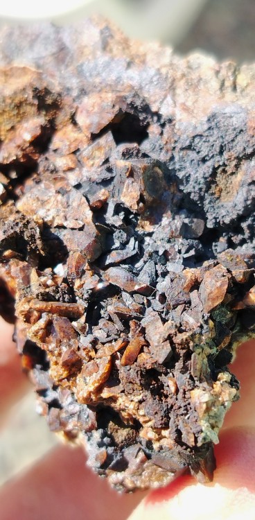 Bonjour et merci @ tous Petite sortie aux grenats, Région d'Atacama, variété Andradite de couleurs noire, vert olive, miel, associés a du quartz et géodes de calcédoine. 1- 2- 3- 4- 5-coté face, 6-coté pile, 7- un bloc, agglomérat de grenats, 8- 9- 10- 11- 12- une plaque avec calcite/ hématite, pour finir 13-détail