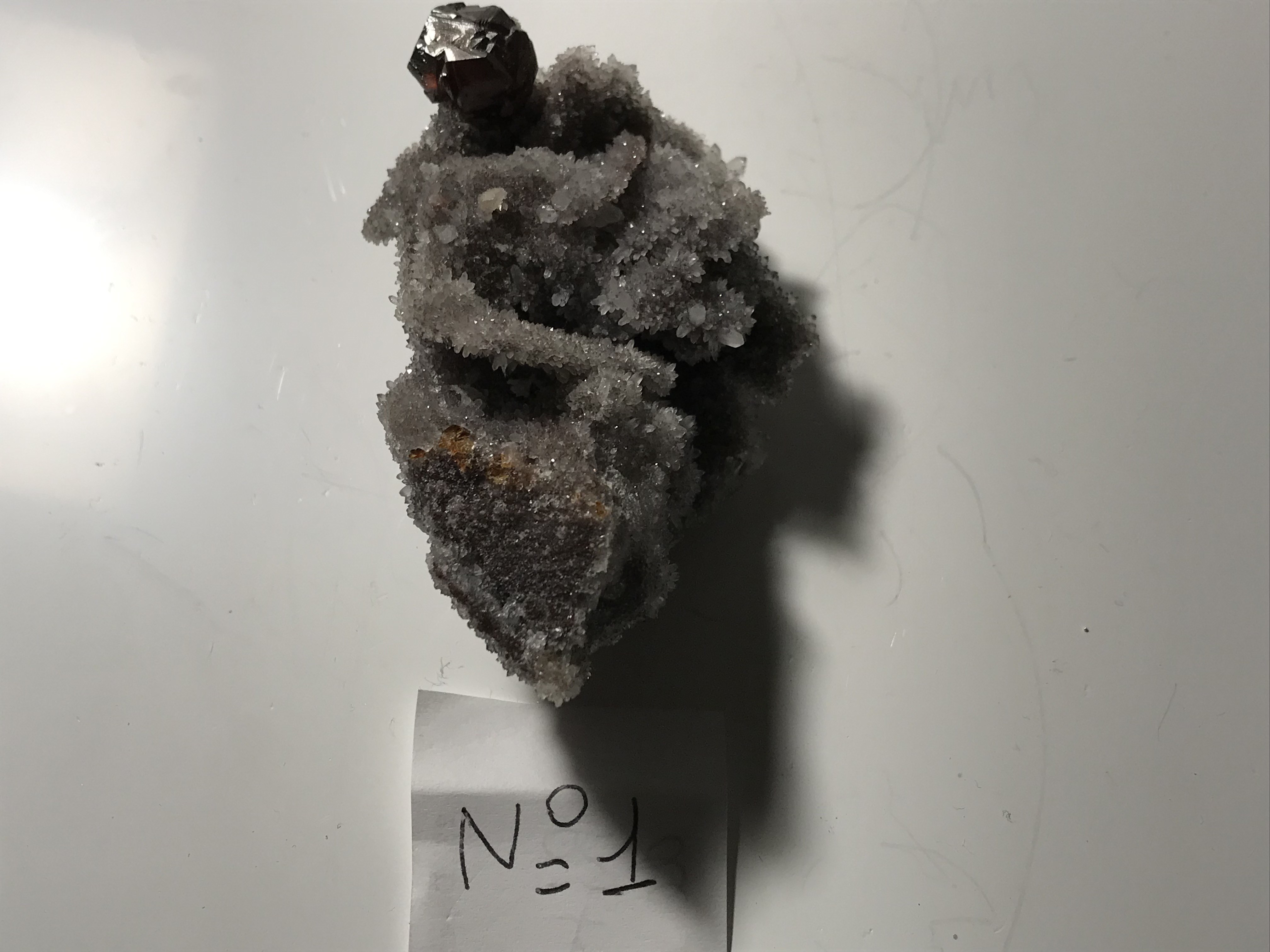 après vérification sur Mindat la galène avec pyrite, est bien de Joplin, Missouri, USA, le quartz avec pyrite et chalcopyrite, Huaron, Pérou👍 La galène octaédrique corrodée, avec calcite Kruchev Mine, Madan, Bulgarie
