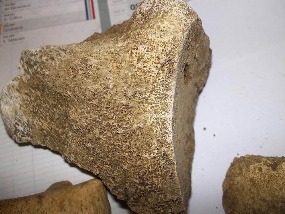 il y a aussi ce fragment de dent avec des boursouflurres , peut etre une caracteristique particuliere d'un animal?