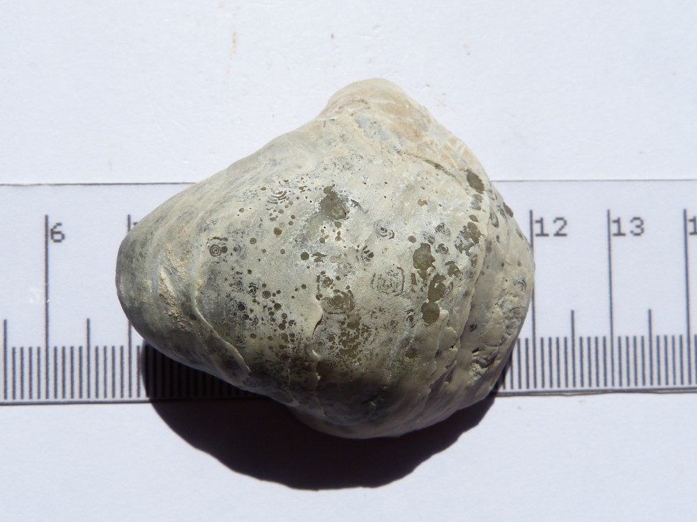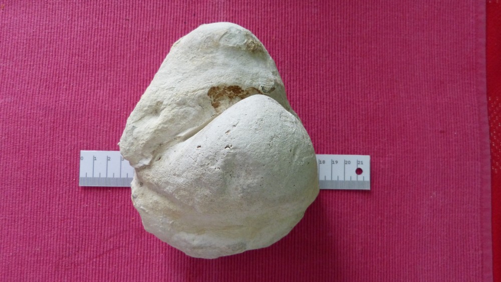 Je vous joins également cet autre bivalve trouvé dans du "Campanien"et toujours en Dordogne. On voit sur ce moule interne quelques traces de la coquille. Mais c'est toujours la même question: De quelle espèce peut-il s'agir ? -
