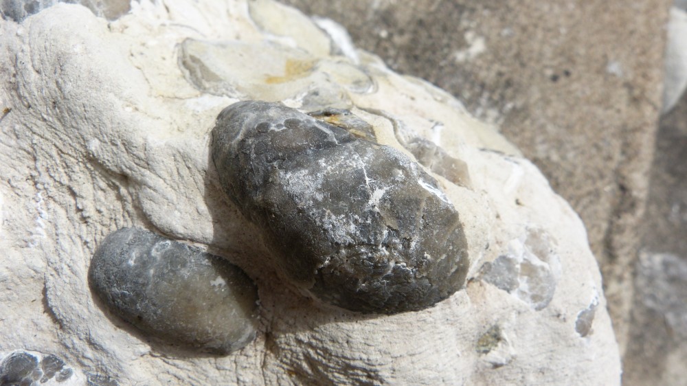 Je reviens vers vous avec de nouvelles photos de ce bloc pris sur diverses positions comme vous me l'avez demandé. Je pense que vous y verrez deux "rynchonelles" mais j'en suis toujours à me demander quelle est l'autre variété d'"huîtres" qui compose la grande majorité de ce bloc. D'après certains d'entre vous, ce ne serait pas la variété "exogyra", d'après d'autres, pas de "térébratule". Que reste-t-il ? Pycnodonte, gryphée ? -