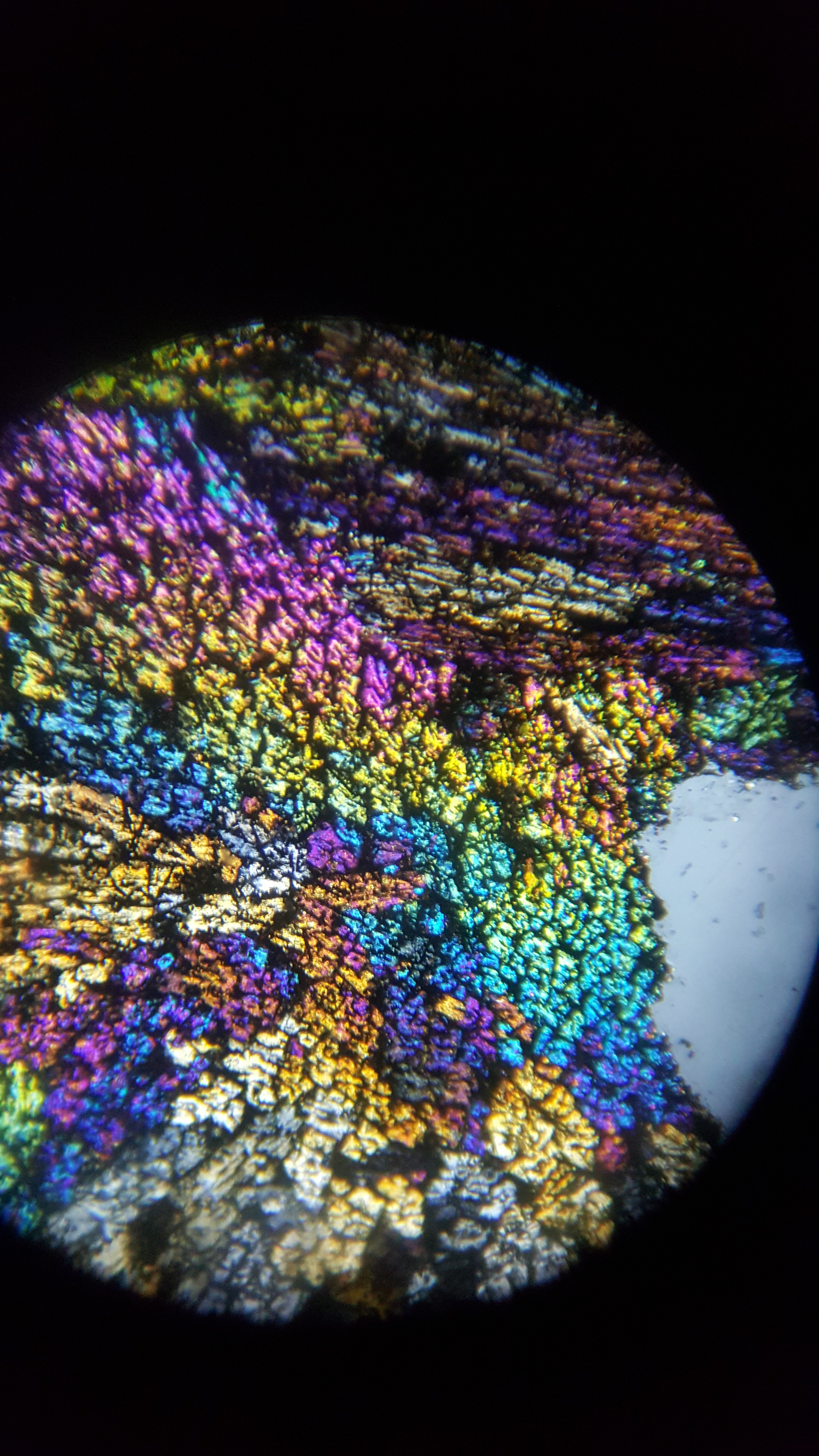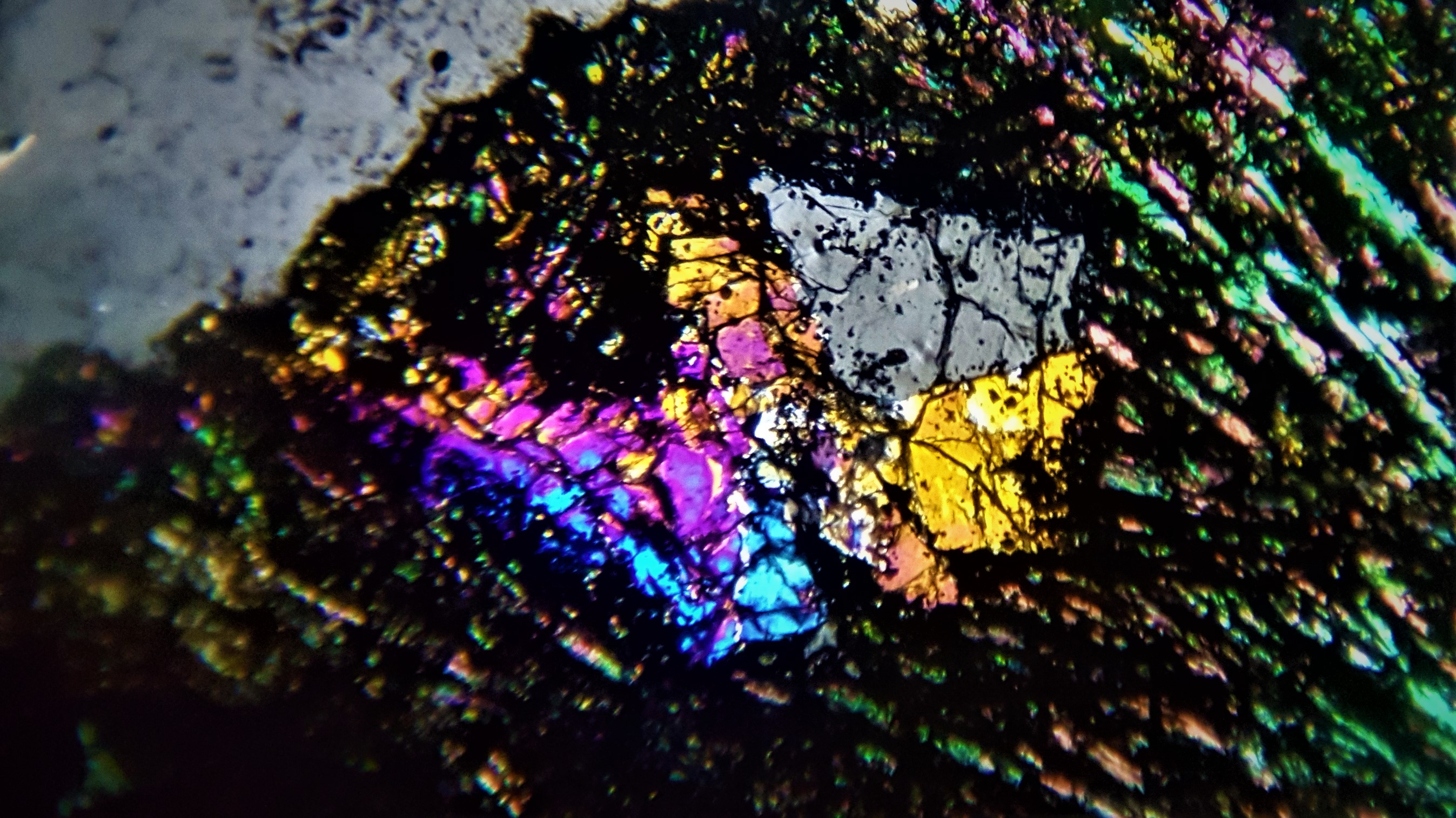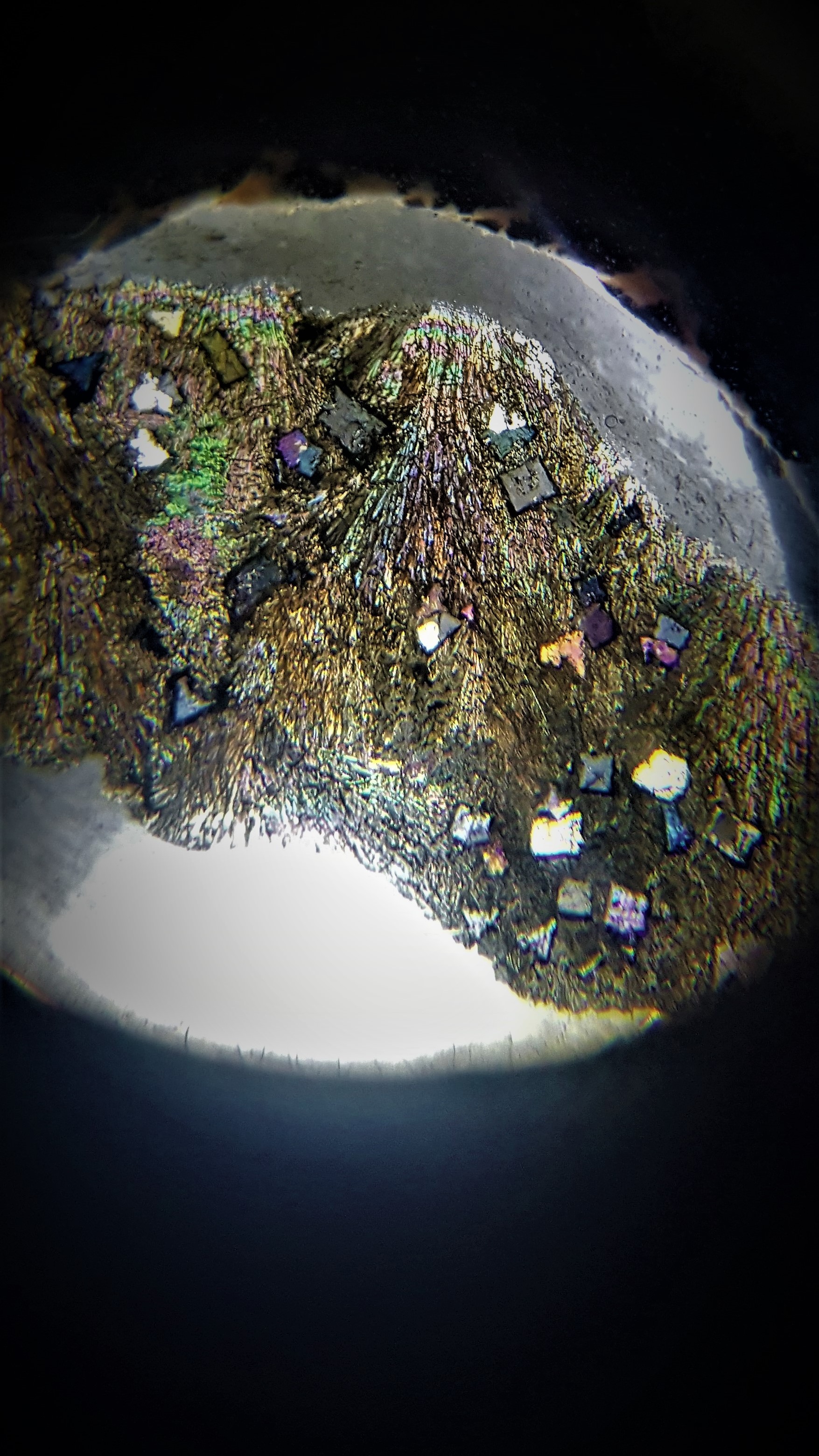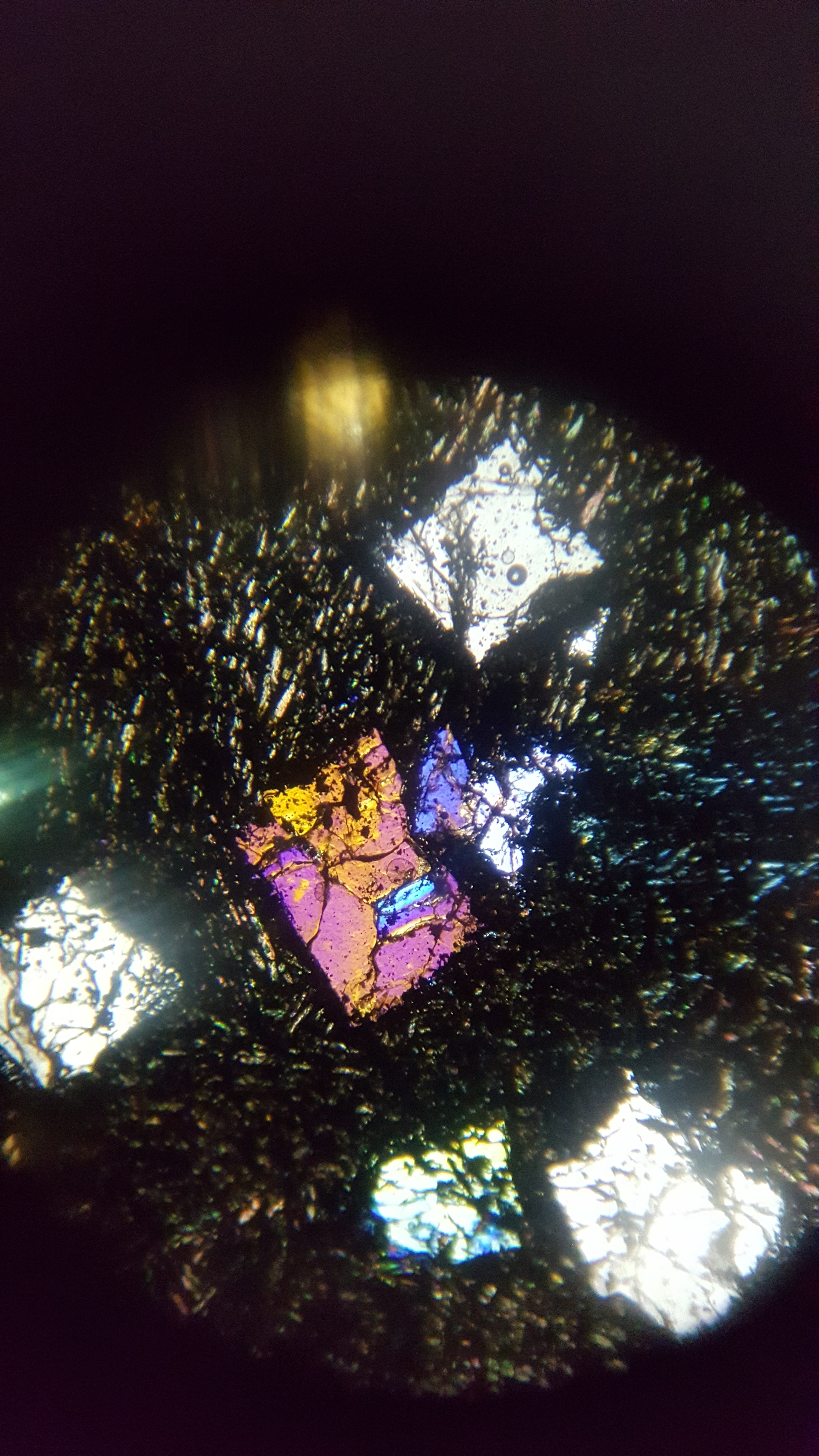 je veut vexer personne mes moi ma texture c ca et cristaux en lame mince juste pour info dans une scorie de plombs et de zinc je vous defie de retrouver la meme chose. et ca c un basalte lunaire dsl mes je suis tetu