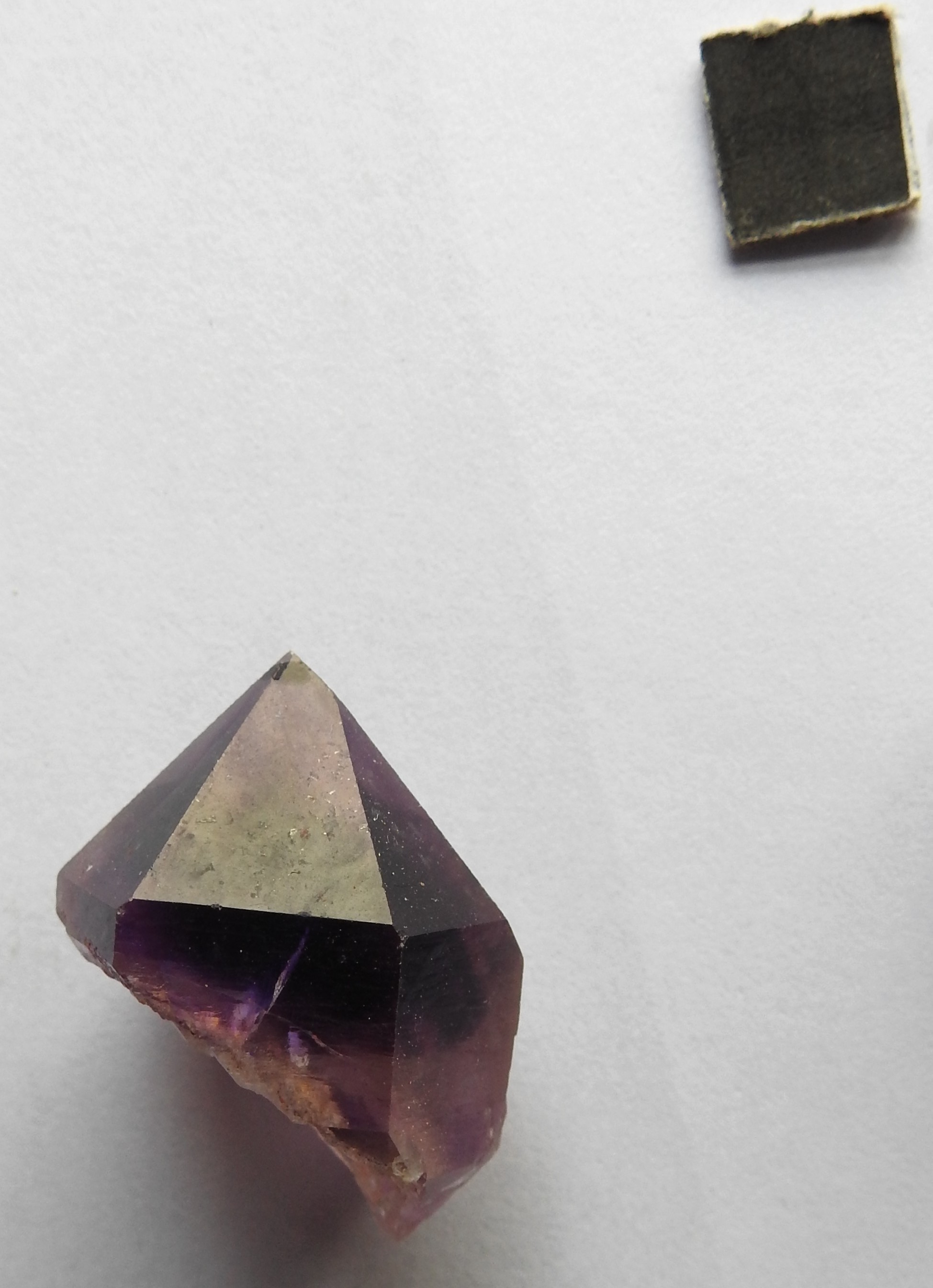 La classique vana.. cristaux 1.7 cm ''le lapin'' de son ptit nom Améthystes flottantes, la plus foncée a des fantômes Eryrthite, cristal principal 1.3 cm d'arête -