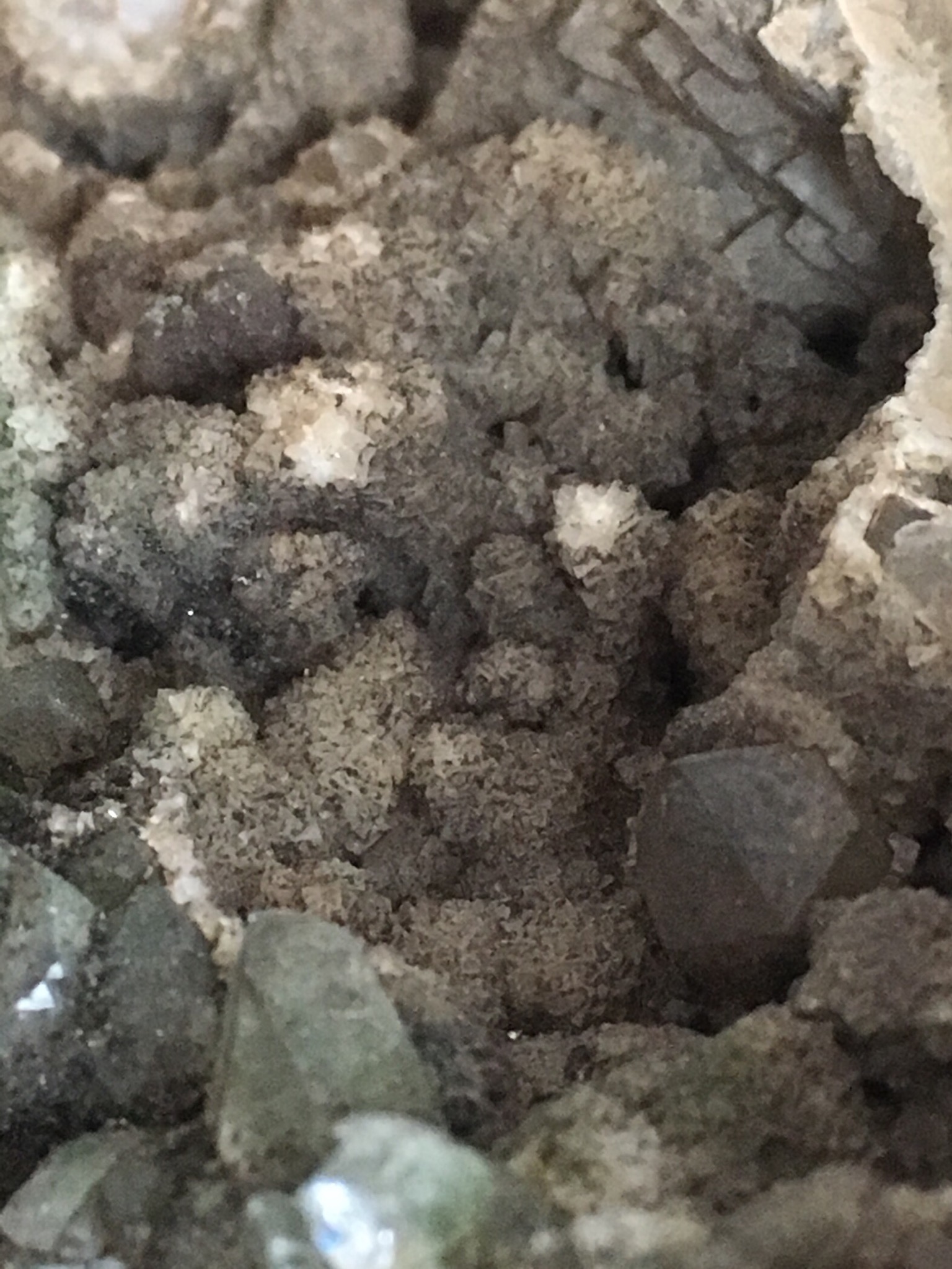 Sur la 6e photo, on peut voir comme des petits cubes de calcite.
