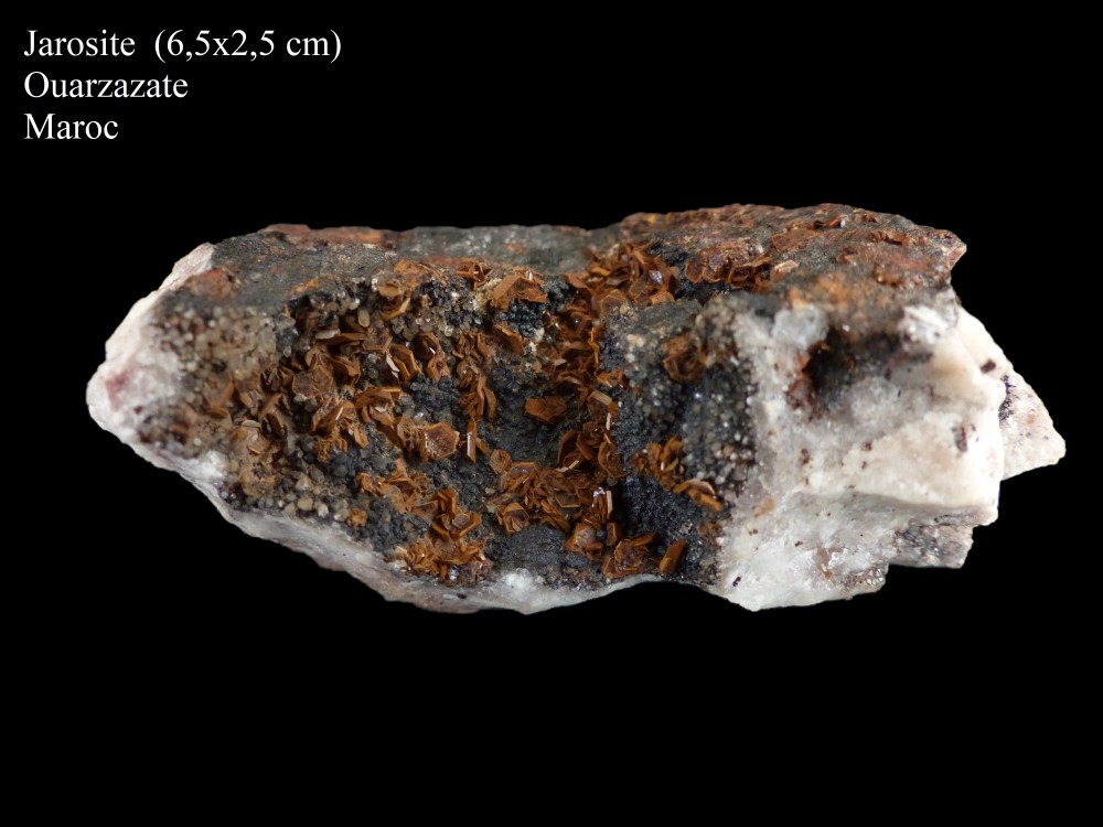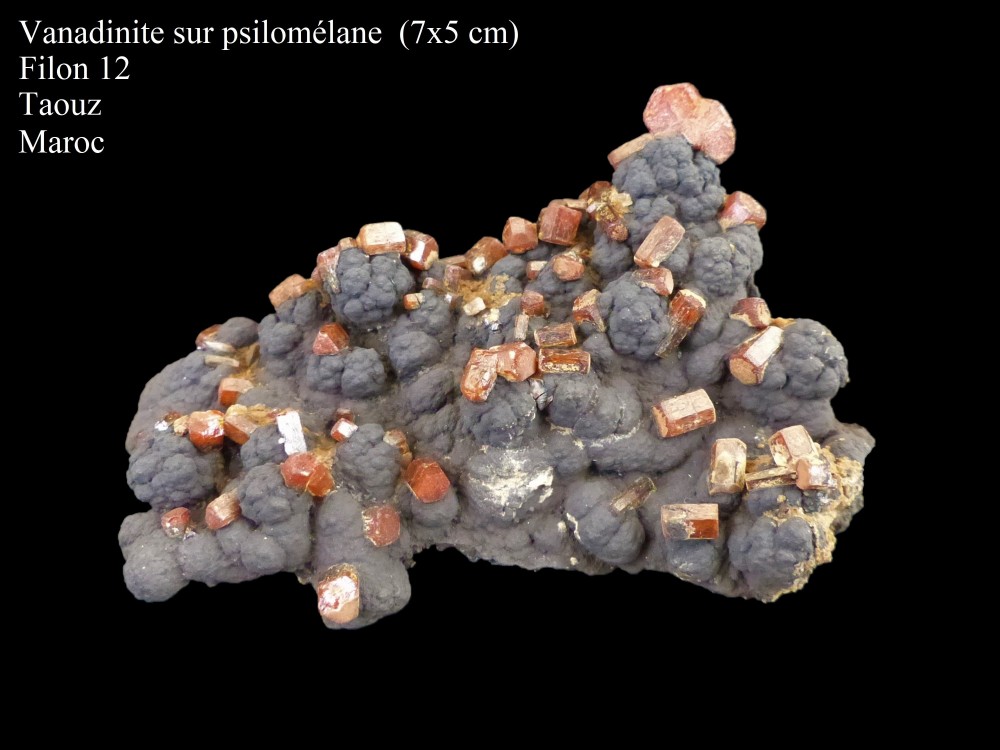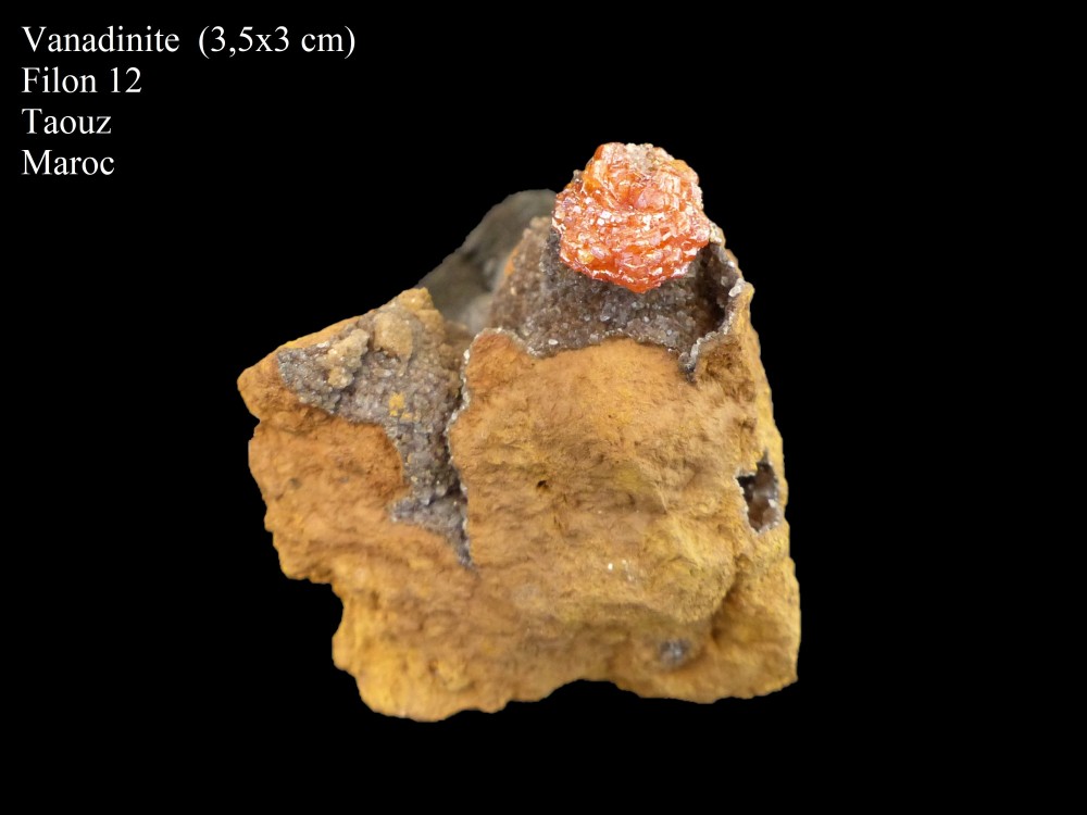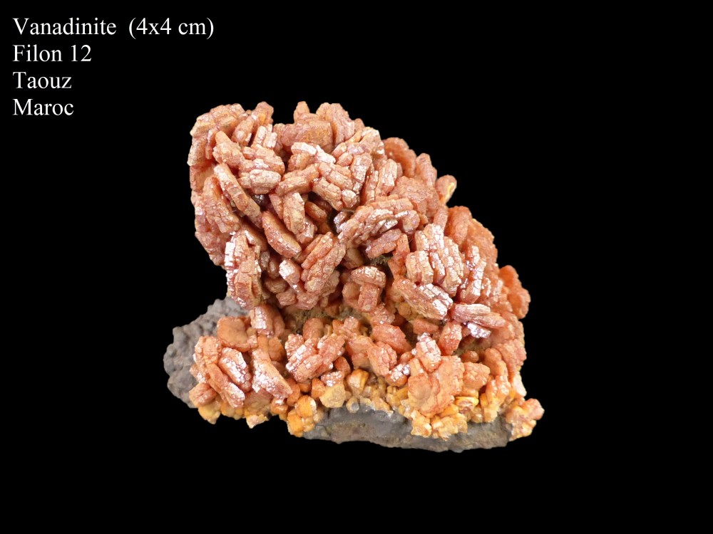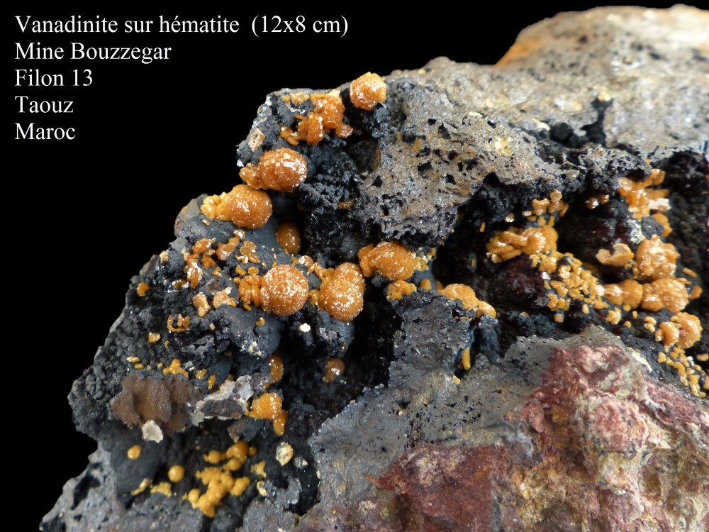 Bonjour, les truc en forme sphérique orange que j'ai ramené et fait analysés ce sont avéré être de la vanadinite, pas de mimétite normalement sur Taouz et pour les baguettes noir ça peut être manganite, pyrolusite ? à plus ............... -