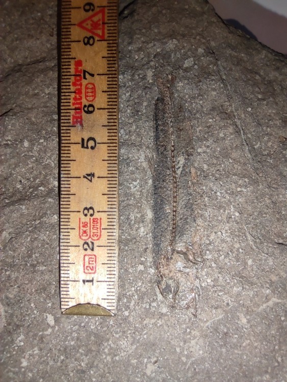 Mon père a trouvé ce fossile dans un ruisseau en ouvrant une boule compacte. Les couches dans les environs sont dans le Trias, présence de calcaire à gryphées, schistes carton, etc...C'est dans le Jura suisse. J'ai trouvé une côte d'ychtiosaure il y a quelques années dans la région.