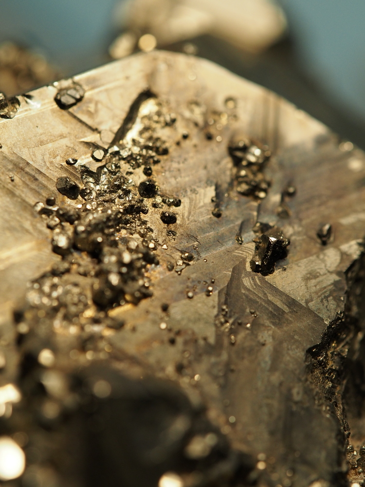 Salut, pour changer un peu, des chalcopyrites de Chorges 15mm de large environ 5cm avec de l'azurite, il semblerait. -