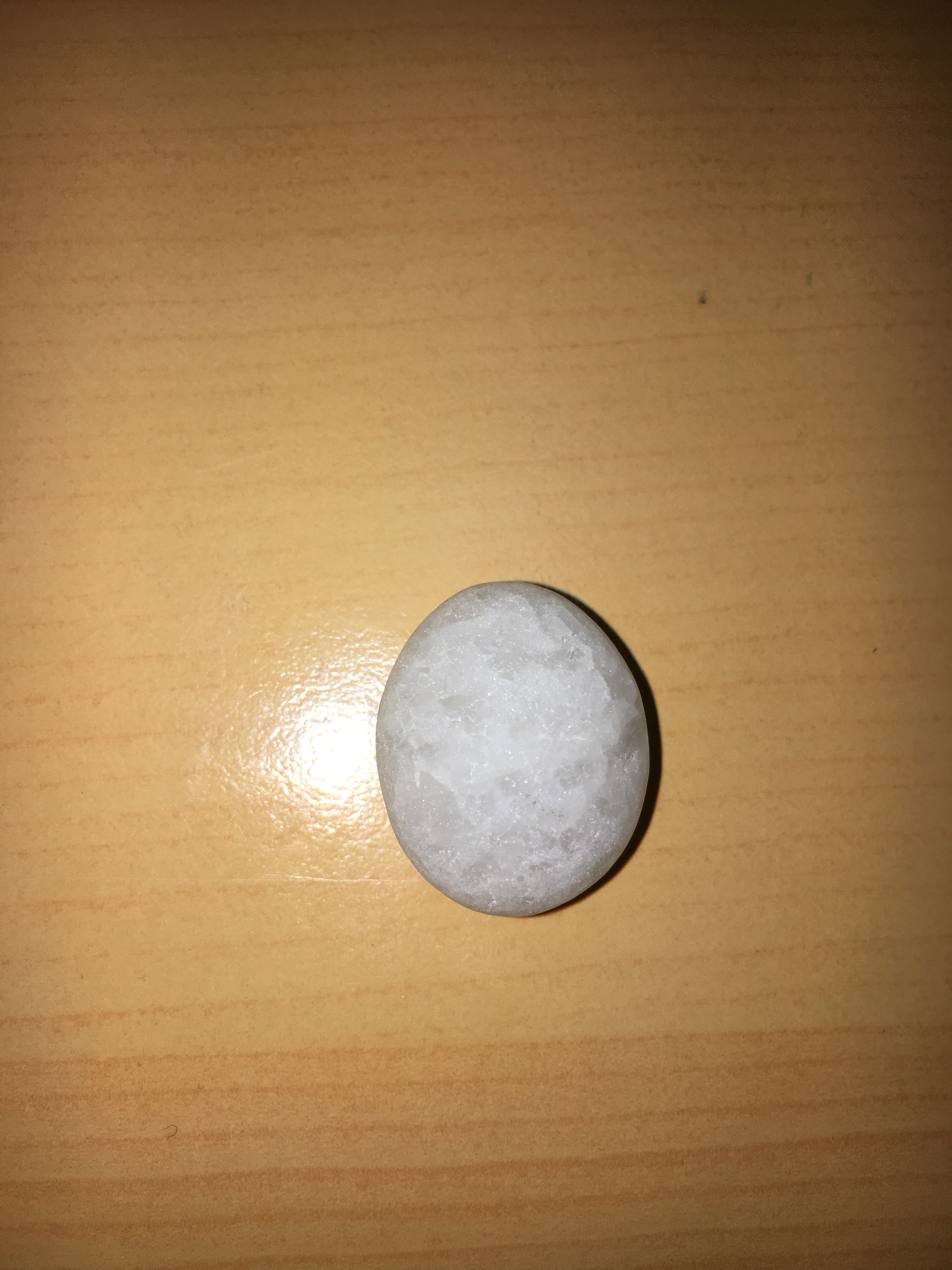 6. Bonjour à toutes et tous, Il y a un mois durant une ballade en bord de mer, dans les Bouches du Rhône du côté de la Couronne, je suis tombé sur cette petite trouvaille ... Une pierre Blanche Ronde Polie, l'intérieur de la pierre semble fissurée, craquelée, la texture n'est pas lisse, ni râpeuse mais légèrement rugueuse et la lumière passe à travers. A quoi cela vous fait penser ... ? Merci d'avance Merci d'avance Cdlt