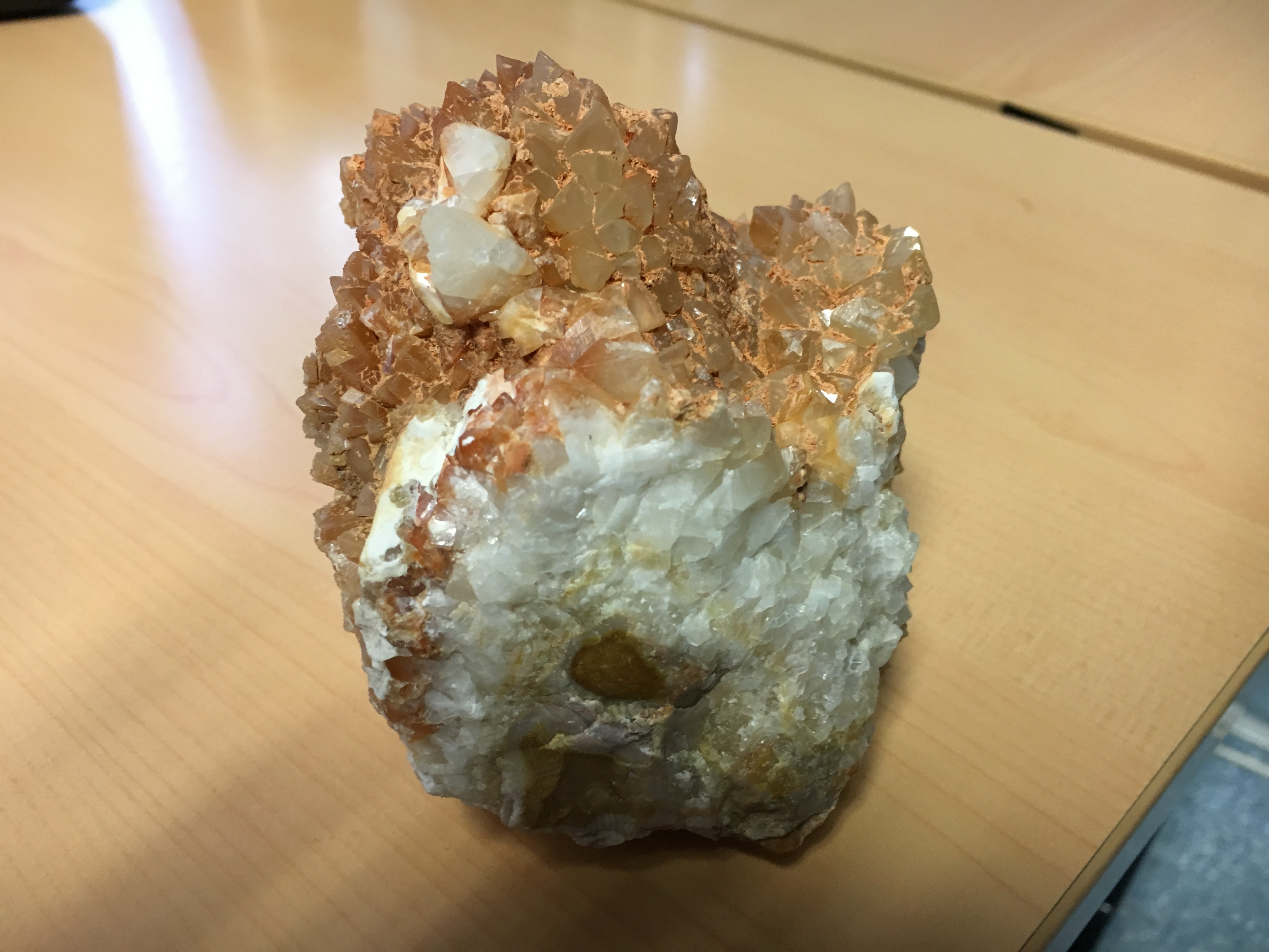 13. Bonjour à tous, Voila une petite trouvaille que j'ai découvert dans un éboulis durant une randonnée cet été dans les Hautes Alpes 05. Pouvez-vous m'aider à en savoir un peu plus, j'opterai pour du Calcite et du Quartz, mais pour ce qui est du type de roche et des petits grains noirs j'en ai aucune idée ... Merci d'avance pour vos lumières :) Cordialement KHAOS