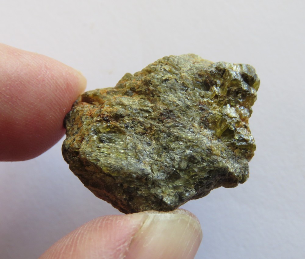 Une Tatahouine (21g) avec un rendu des couleurs proche du réel: Avec des grains de Pyroxène dominants, gemmes mais de taille moyenne, la diogénite Calama 076 (Atacama, Chili): A grains de pyroxène gemmes plus gros: NWA 7831: Les diogénites sont majoritairement constituées de ces grains/cristaux d'orthopyroxène vert avec, en minéraux accessoires: très peu de métal natif, troïlite, silice et chromite. -