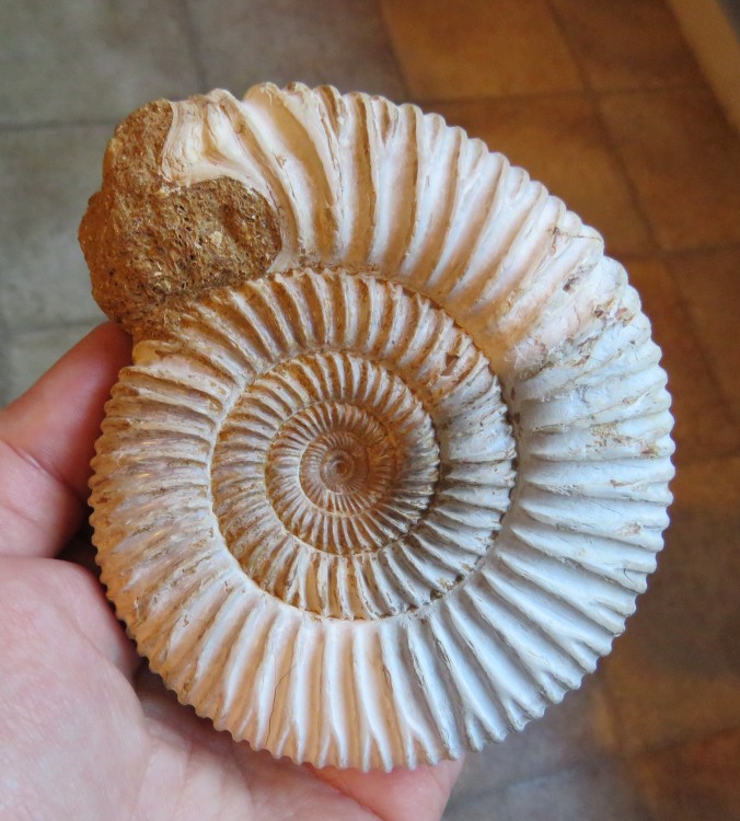 10. L'ammonite: genre Kranaosphinctes de l'Oxfordien malgache, malheureusement poli ; Le nautile: un Cenoceras probablement, au vu de l'origine malgache, mais trop "raboté" pour en dire plus .