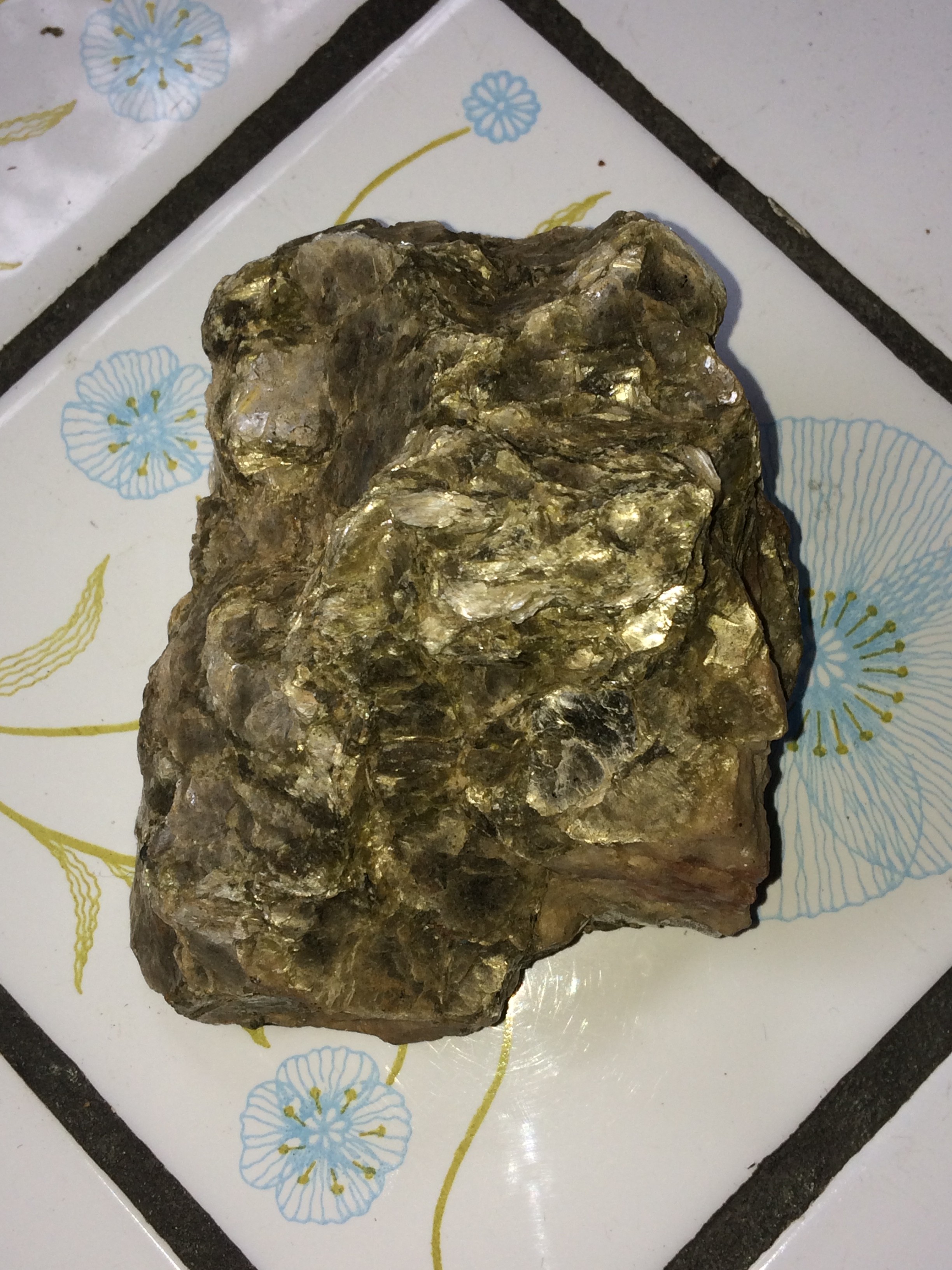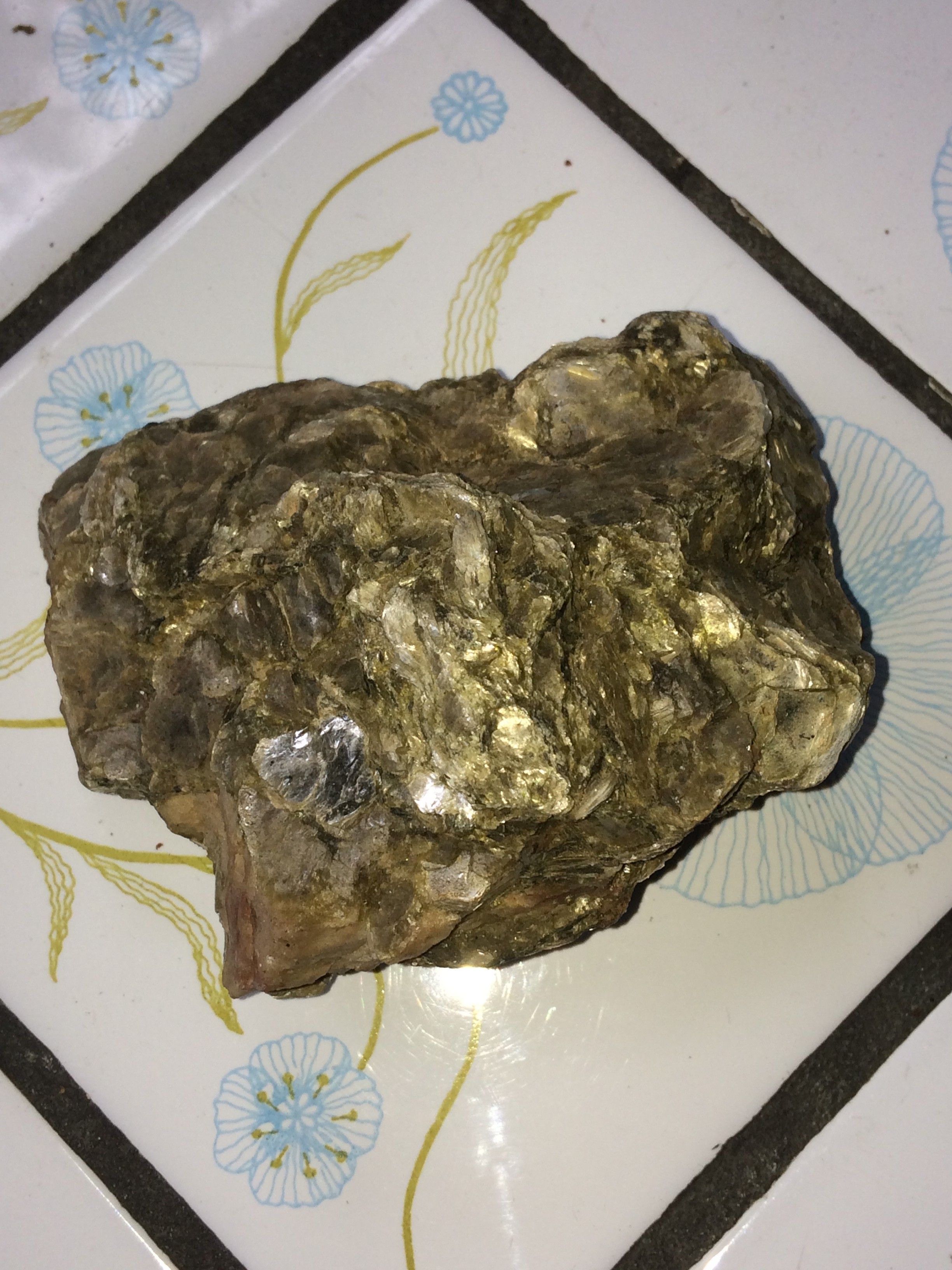 Bonjour je désire savoir si vous avez déjà vu ce genre de Roche stratifié 1,5 cm De hauteur 6,5 Cm de long 60,47 grammes?la Roche brille des Deux côtés et ne réagi pas à l’aimant... Ça sent la terre lorsque l’on le mouille .merci