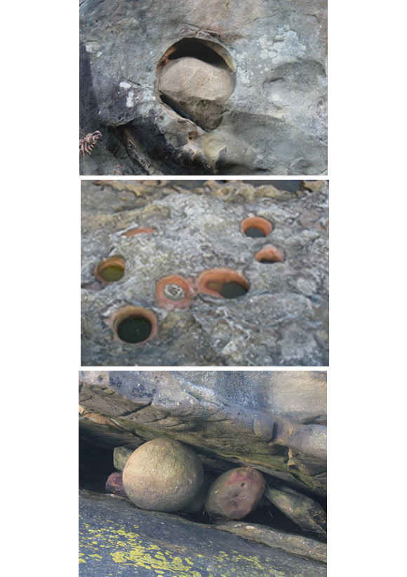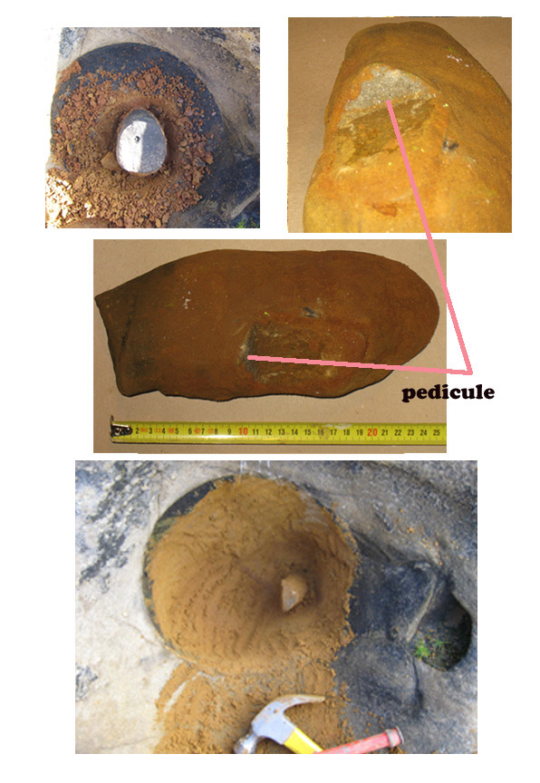 mystere aux erotics rocks 3 Mais le plus surprenant c’est que ces sphères (pas toutes..) présentent un trou au pole supérieur. Plutôt un « orifice »parce que la cavité se poursuit à l’intérieur de la boule comme on peut le constater sur la dernière vue : une coupe naturelle d’une sphère. Photo 5 à suivre...
