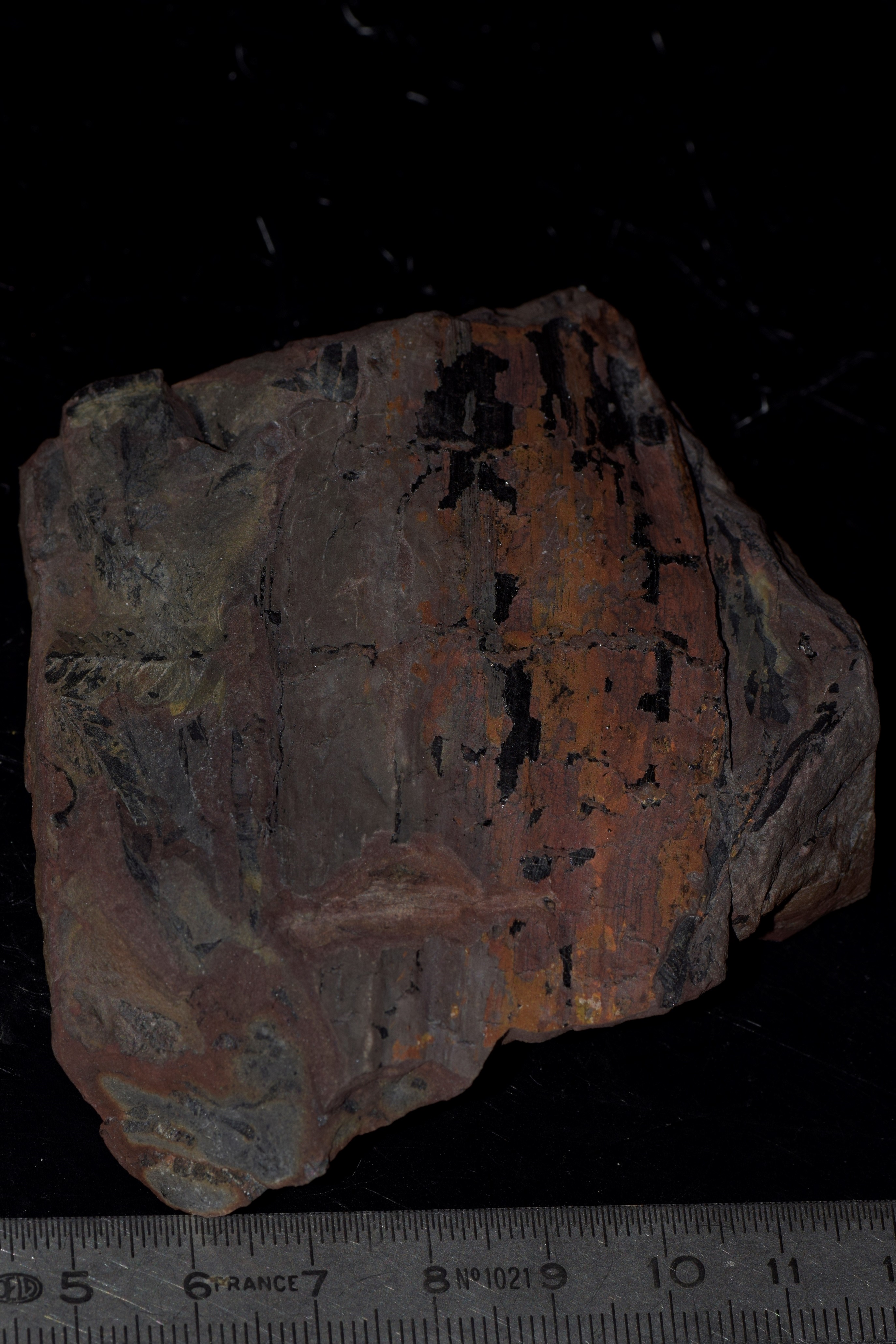 un fragment de cordaites fossilisé => ça je ne réussis pas à le définir...car parait "lourd" et une ammonite trouvée sur le site... (bizarre???) -