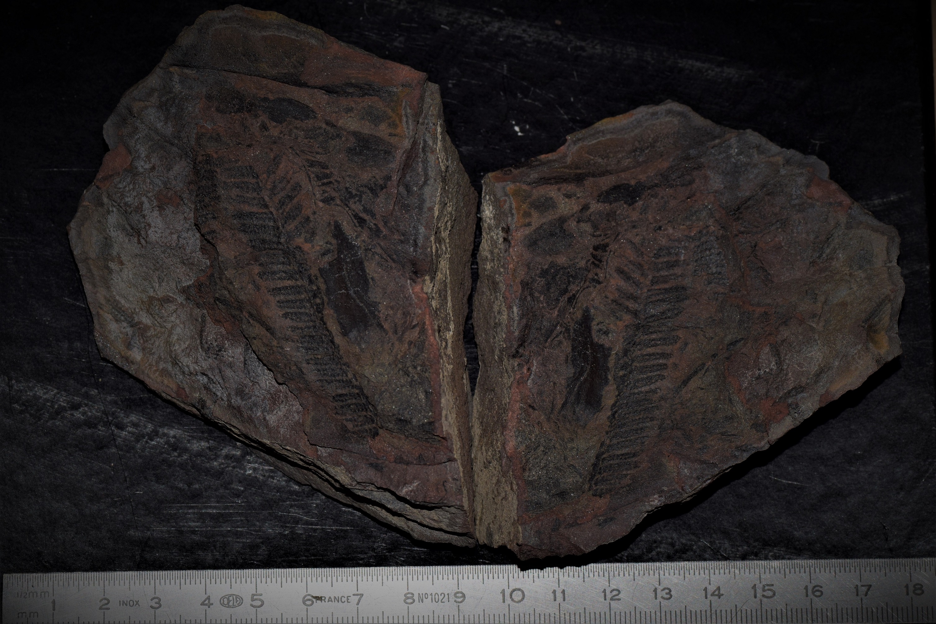 Bonsoir, quelques nouveautés et identifications...n'hésitez pas à me corriger je ne suis pas certain (malgré le post détaillé sur ce même sujet). Callipteridium (feuille 3,5X3,5 cm) Quelques "traces" de fougères mais rien d'extraordinaire.... sauf la fougère au cœur de la pierre ^^ Empreinte et contre-empreinte de Pécoptéris (feuille : 1X6 cm). Empreinte et contre-empreinte de cordaites (6cmX2cm, ép : 1 à 6 mm) annularia sphenophylloides ? (diam : 1cm) et annularia stelatta ? -