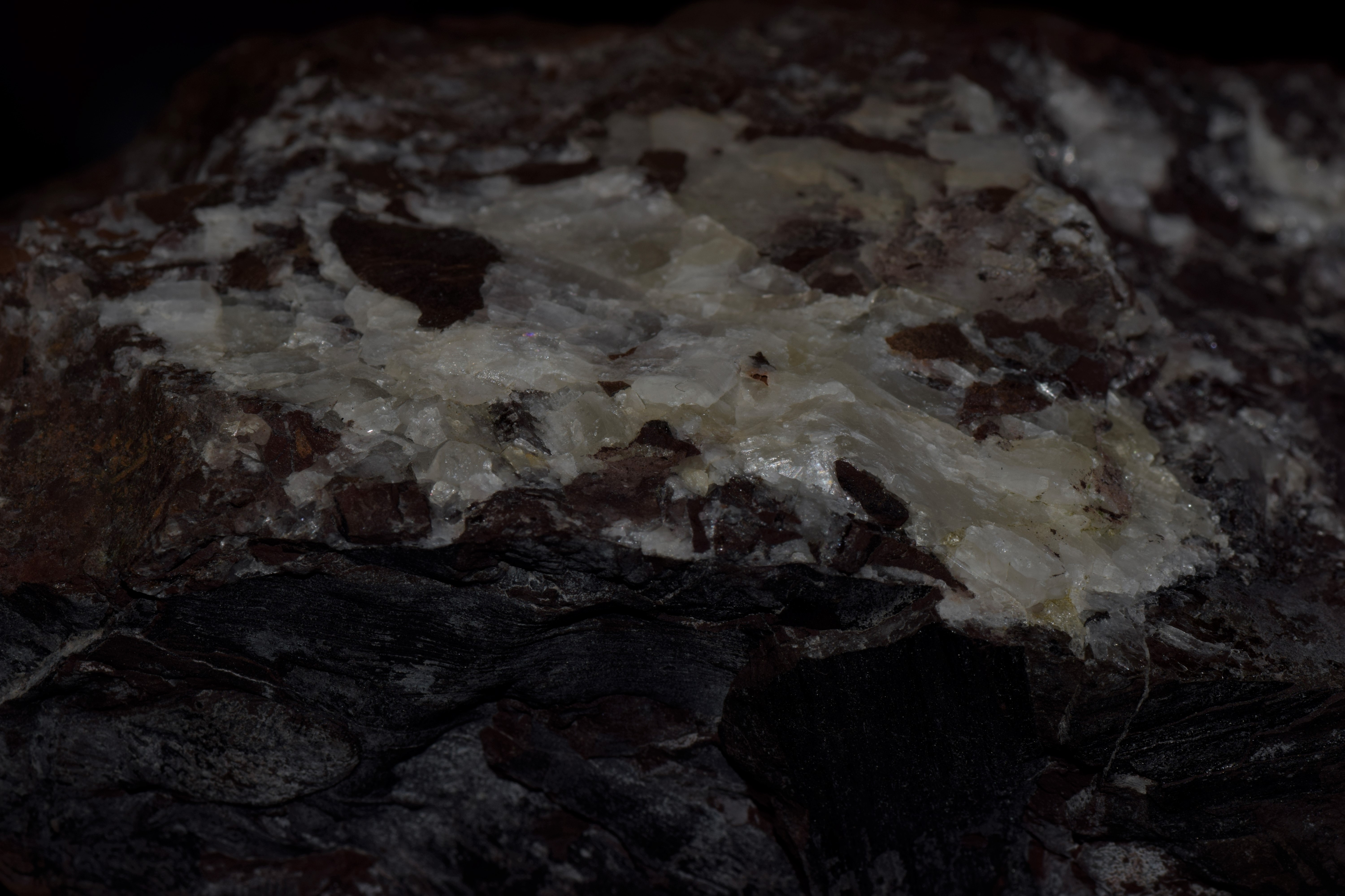 Bonjour, Merci Marc, c'est vrai que ça peut y ressembler, mais est ce que ça peut correspondre au lieu ? Michel, je veux bien faire la mesure de densité mais je ne suis pas sûr que ce soit réaliste, en effet le minéral blanc représente une infime partie de la pierre...du coup on aura plus la densité du support que des "cristaux" blanc, non? (Je vais quand même le faire c'est rapide!). Merci Michel. D'autres avis ou test(s) à faire ??? Merci d'avance à tous. -