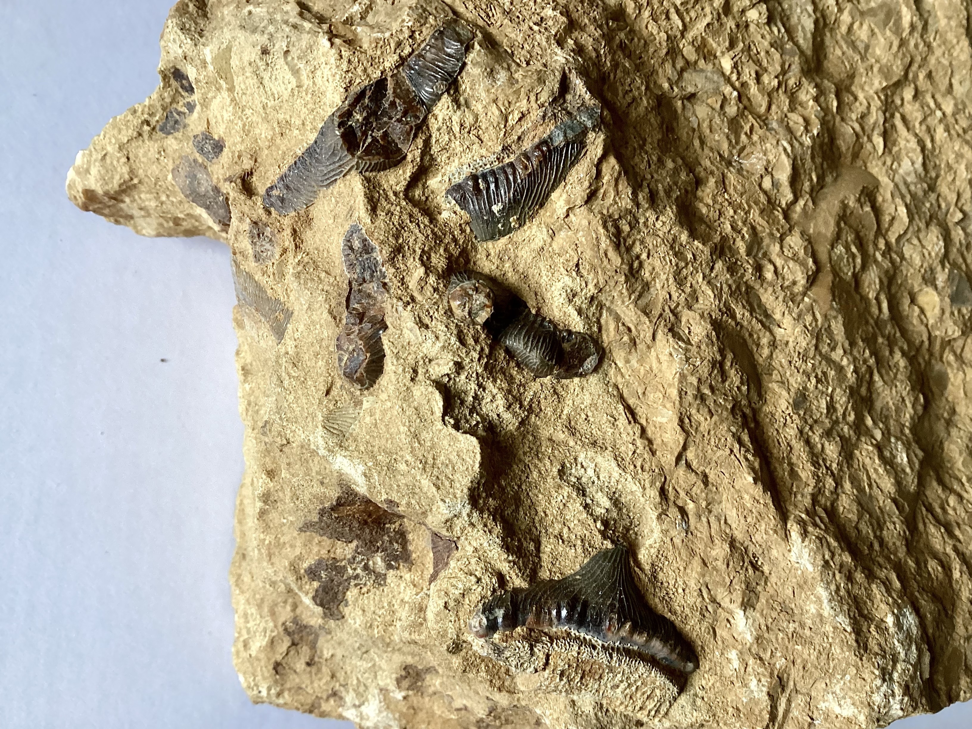 Dents d’Acrodus, 3/3,5 cm de largeur, Sinémurien inférieur, zone à semicostatum.