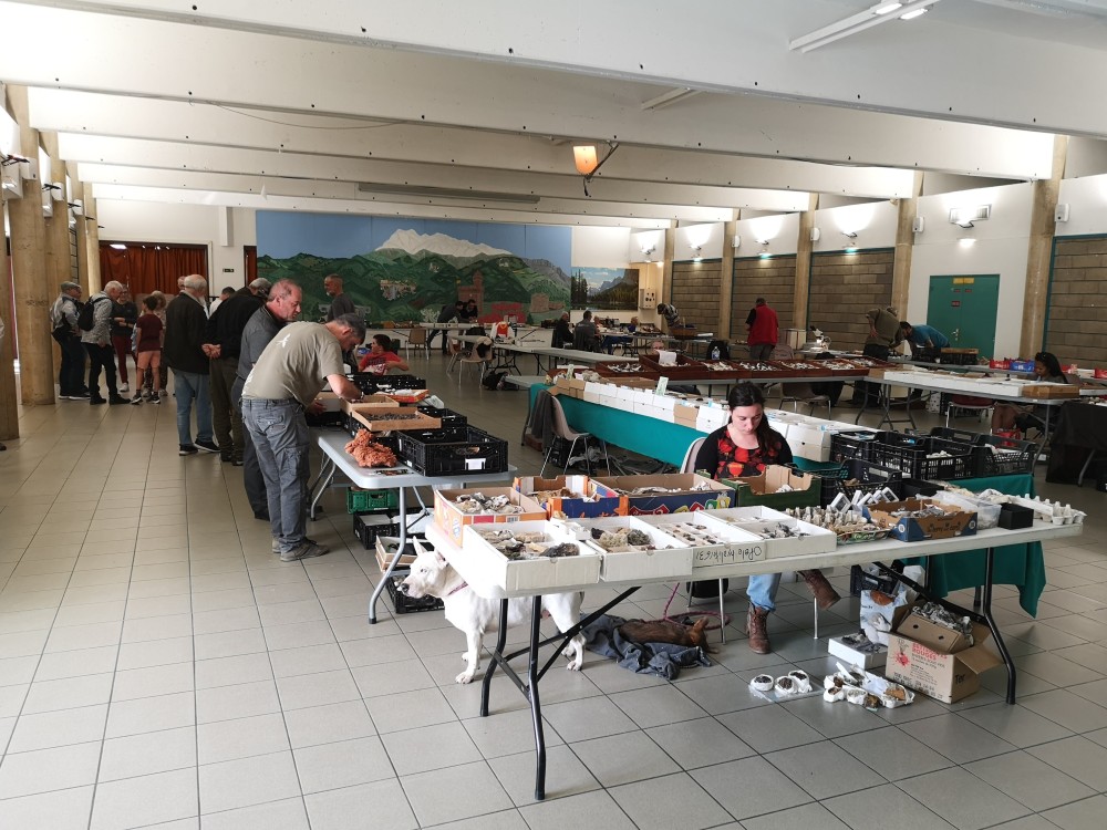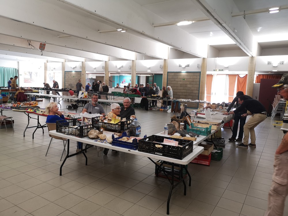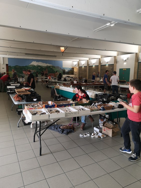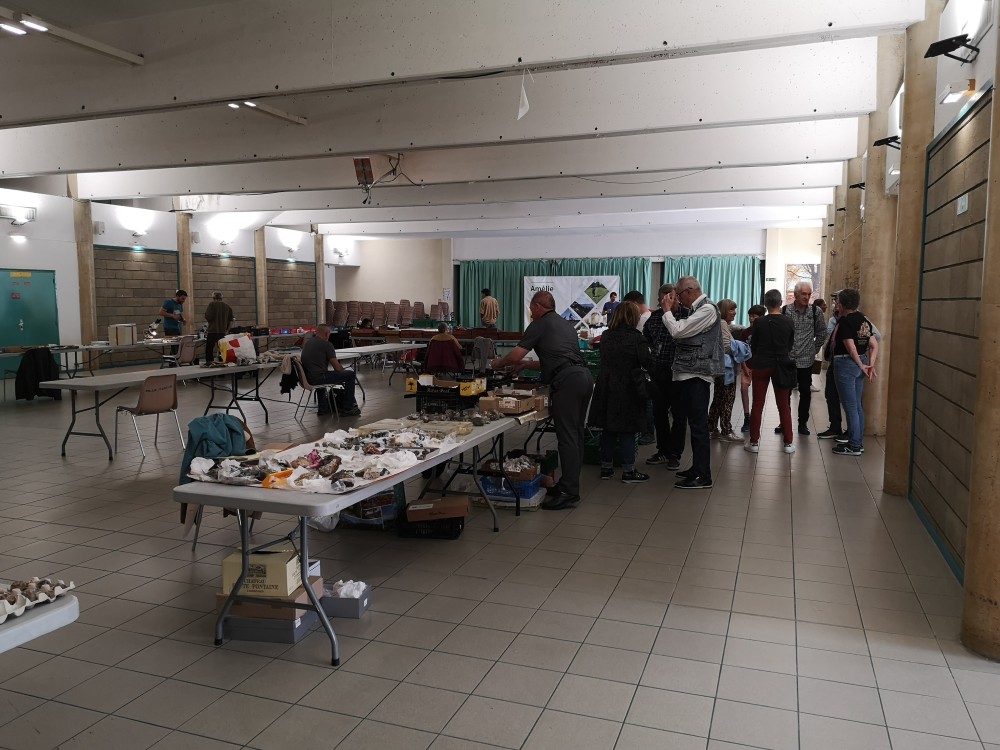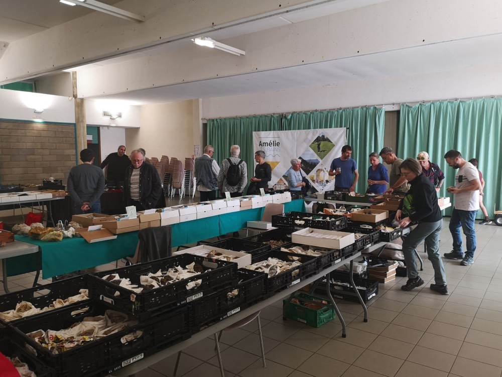 Bon ça y est j'ai enfin le temps de vous faire un petit cr de notre première bourse d'échanges. Ce dimanche à Amélie les bains se déroulait la première bourse d'échanges de l'avmp66. Pour nous ce fut une très franche réussite. J'ai bien fait de faire le forcing depuis plus de 3 ans pour qu'elle se fasse, l'an dernier le covid nous a contraint à devoir l'annuler, cette année pas d'excuse 😁 Malgré 3 ou 4 annulations nous avons réussi à réunir un total de 27 tables, moi qui disais à partir de 10 ou 12 tables je serais déjà content pour une première, là vous avez dépassé toutes mes attentes. De mon point de vue je pense qu'à tout niveaux ce fut une vrai réussite, convivialité, partage, échanges, ambiance... tout y était. Nous avons accueilli les exposants à partir de 7h, puis ouverture au public à 9h. Les échanges de minéraux et d'anecdotes ont été nombreux jusqu'à notre petite pause apéro vers 12h30, une petite collation et un peu d'hydratation après toutes ces discutions passionnées ont été les bienvenues le tout dans une super ambiance. Nous fermerons les portes sur cette première édition vers 16h et à l'heure du bilan, Que dire ? Une ambiance conviviale et familiale, de très bons échanges, quelques belles rencontres quel plaisir de pouvoir mettre un visage sur des pseudonymes internet, des exposant d'un peu partout Pyrénées orientales, Ariège, Puy de dome, Aude , Hautes Pyrénées, Var, Espagne... On espère que cette première édition vous aura séduit autant que nous et qu'on pourra compter sur vous l'an prochain pour la 2ème édition, autant exposants que visiteurs. On vous attends encore plus nombreux, la salle peut accueillir bien plus de monde si besoin 😉 Je tiens surtout à remercier tous les bénévoles qui ont aidé à l'organisation, la mairie d'Amélie les bains et ses équipes, tous les visiteurs ayant fait le déplacement, et surtout tous les exposants venus sur cette première éditions sans vous il n'y aurait pas de bourse, mille mercis 🥰 Enfin entre Ludo et moi, nous rentrons avec plus de 3 caisses ifco de minéraux et fossiles échangés 😁 -