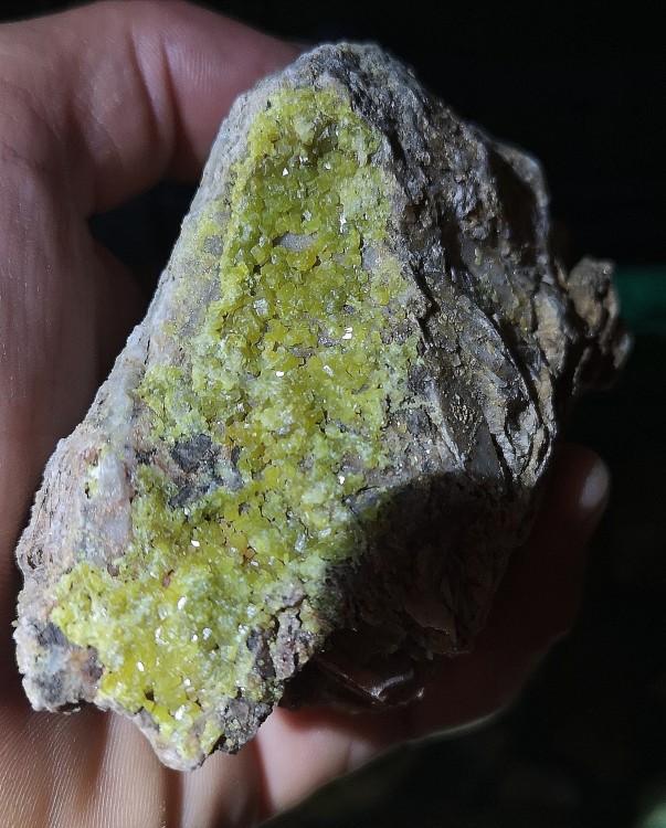 Merci Chantal oui on est content on a trouver du jaune au vert foncé en couleurs. Les jaunes étaient plus sur le quartz massif blanc eux. Voici au passage une photo du trou quand le petit est arrivé Merci -