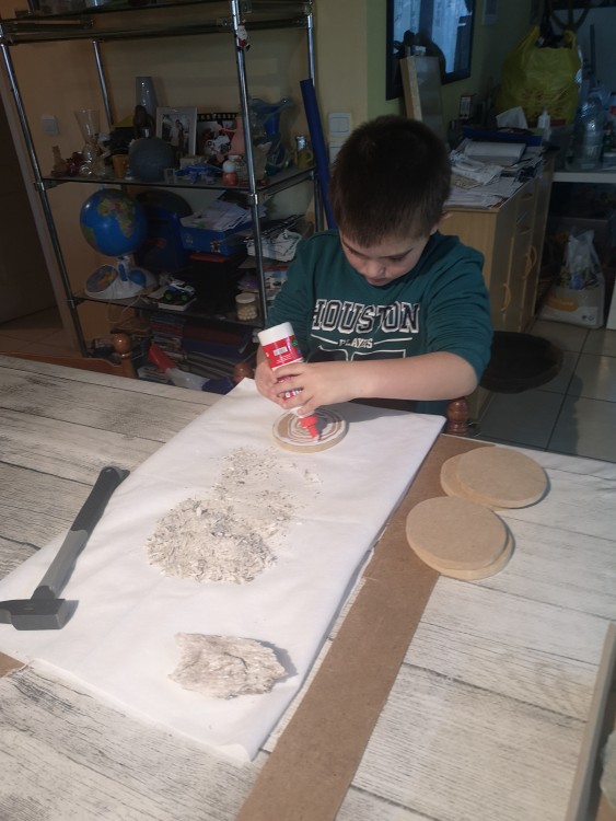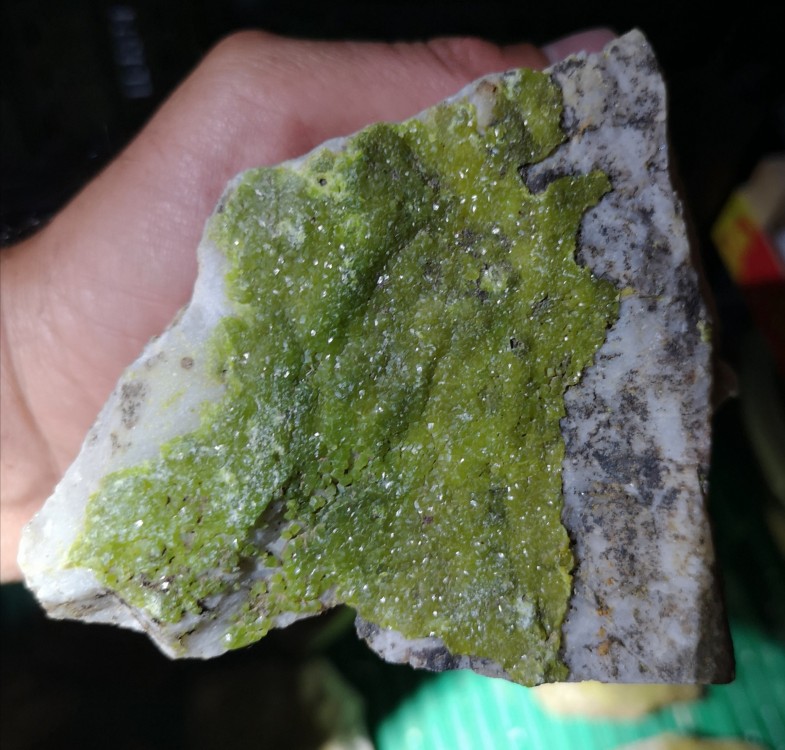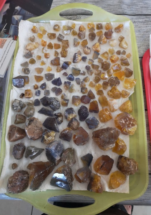 .La suite de notre séjour en Aveyron se sera passé à valzergues. Premier jour avec le club puis une journée et demi en famille. Ben on sera régalé superbe site dans un cadre magnifique au calme et au frais, où on aura mis en place la même stratégie qu'à asprieres, à savoir creuser en profondeur dans les déblais au filon jaune Le trou de papa, j'ai poussé l'arbre mort et gratté dessous après avoir virer les ronces et la petite végétation, et ça aura payé peu de monde avait fouiller ce coin Et Ludo et Maria auront bien creusé aussi Et oui on pose le casque pour la photo Cela nous aura permis de mettre la main sur quelques jolies petites pièces et une grande variété de couleurs. J'aurai aussi attaque un peu la paroie aux escofages et réussi à mettre la mais sur quelques petites plaques de fluo. Nous aurons aussi eu le plaisir de trouver quelques jolis quartzs des fois en association avec de la geotite et de la fluo. On aura aussi fait de belles rencontres sur le site, mais aussi notre hôte qui nous a prêté un bout de gazon pour pouvoir planter notre tente. Ce séjour nous laisse comme une grosse envie d'y revenir, peut être en 2021 et coupler avec la bourse de Millau. Petit coup de main pour trier en rentrant à la maison, le roi se mets la j'ai dit lol La suite des vacances au prochain épisode -