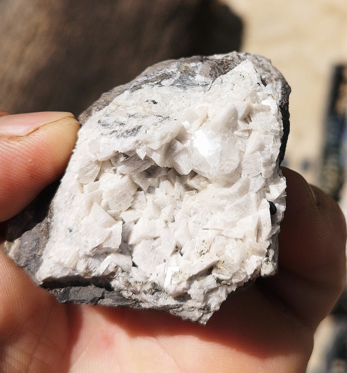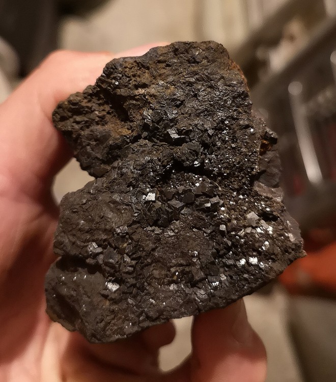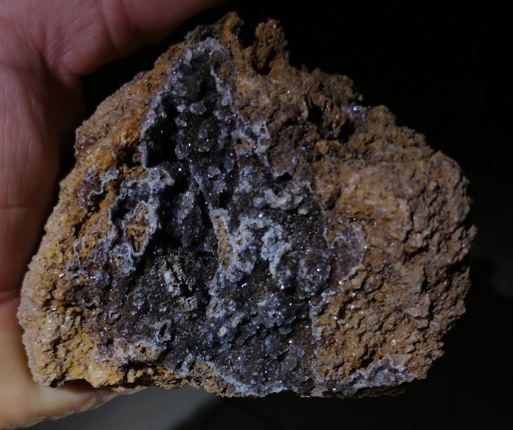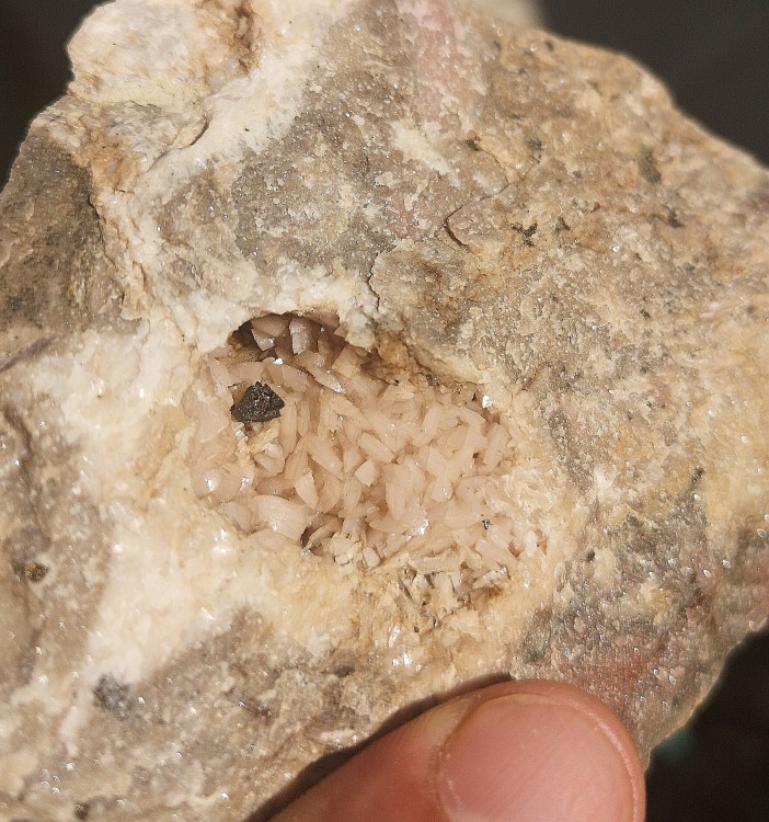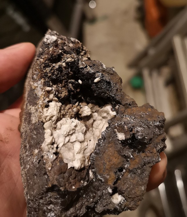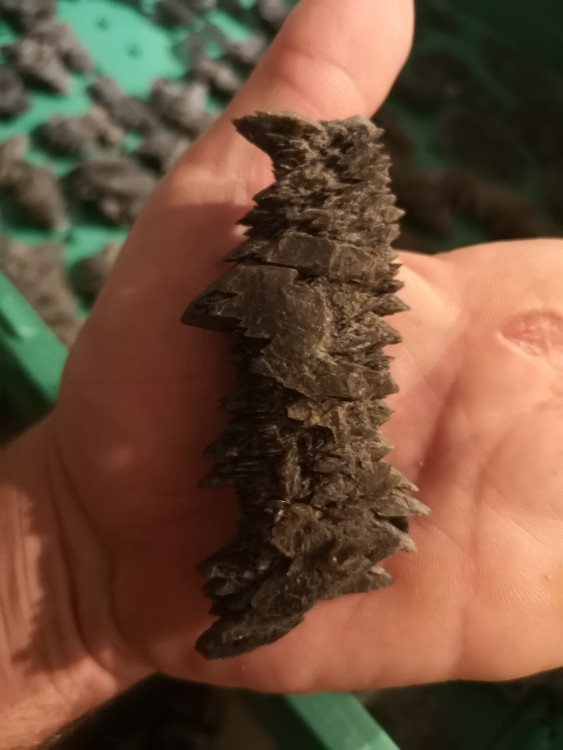 Merci ça nous fait très plaisir. Tant qu'à être à Clermont de l Hérault on a chargé la tente de la pêche et passe la nuit non loin d'une carrière qui nous démangeait beaucoup, on y était déjà aller mais on était un peu resté sur notre faim, de belles trouvailles mais l'espèce minérale recherchée nous avait échappée, enfin si on en avait trouver 2 mais à regarder à la loupe lol. Bref une bonne nuit réparatrice après la journée à la bourse d'échange et nous voici parti à la recherche des fameuse tetraedrite de Uclas du bosc. Le site ne bouge plus et reste comme la dernière fois sauf quelques traces de prospecteurs. Mais nous avons "grandi" de nos apprentissages et de nos diverses sorties. Après m'être battu à coup de gros blocs contre un gros essein de guêpes juste ou je pensais fouiller, 2 piqûres mais je les ai eu et je peut commencer. Cette fois ci papa fait le ménage sur une des parodies à peu prêt accessible à pied, je fait tomber de gros blocs instable jusqu'à voir une veine bitumeuse. Maman et Ludo eux vont casser les gros blocs que je leur ai fait descendre en bas, et moi j'ouvre les petites poches bitumeuse en haut tranquillement. Nous avions prévu un sceau de 5l avec un peu d'essence dedans pour voir ce que l'on ramenait cette fois ci. Et de suite nous avons les étoiles dans les yeux les tétra sont là, il nous faudra même choisir lesquelles ramener à la fin de la journée. 9h sonne et avec lui arrive un contact Facebook Jean Emmanuel qui me fait rêver avec les photos de sa vaste collection et qui était en vacance dans le secteur, on c'était mis d'accord pour se retrouver sur loiras pour une première rencontre. Et qu'elle rencontre encore une fois nous découvrons une personne simple et accessible, et comme très souvent lors de nos rencontres avec des minéraux pour Ludo. Nous nous mettons tous à prospecter ce secteur prometteur et les trouvailles s'enchaînent tetraedrite sur dolomite blanche, avec quelques calcites, ou sur dolomite rose superbe et elle sans goudron donc déjà bien propre et brillante. Puis nous sommes rejoint par Bruno et Alex 2 jeunes fort sympathique aussi. Et la en nettoyant une pièce dans le sceau d'essence je tombe sur une dolomite blanche avec une tétra et de l'autre côté un tout petit quartz très noir, et qui le reste malgré le passage à l'essence, je suis trop content la matinée est riche en découvertes. La matinée se passe sous un soleil de plomb puis en début d'après midi manu doit rentrer pour profiter un peu des vacances en famille aussi, nous décidons de faire un premier voyage à la voiture pour le raccompagner et en profiter pour se faire une petite bière fraîche bien méritée et casser la croûte. Puis tous les 3 rentrent et nous retournons en famille finir la journée sur un autre secteur de la carrière. Et cette fois ci nous tomberont sur des pyrites, des sphalerite, et quelques rare quartz très brillant et transparent posé sur de la dolomite blanche, nous sommes comme des petits fous la journée est extra pour nous. Alors je sais pour en avoir vu chez certains amis collectionneurs qu'en taille ça n'a rien à voir avec ce qui a pu s'y trouver quand la carrière était encore en activité, mais pour nous ce sont de petits trésors et en prime nos trouvailles familiales. Le soleil descend il est temps de retourner à la voiture, heureusement qu'on était parti avec mon pick-up Dailleur car entre les minéraux pour la bourse, le campement, et nos trouvailles, on va pas être légé au retour. Pour conclure encore un week-end riche en rencontres, et quelques petites trouvailles sympa a la clé, que demander de plus, à si peut être quelques degrés en moins pour la prochaine lol. -