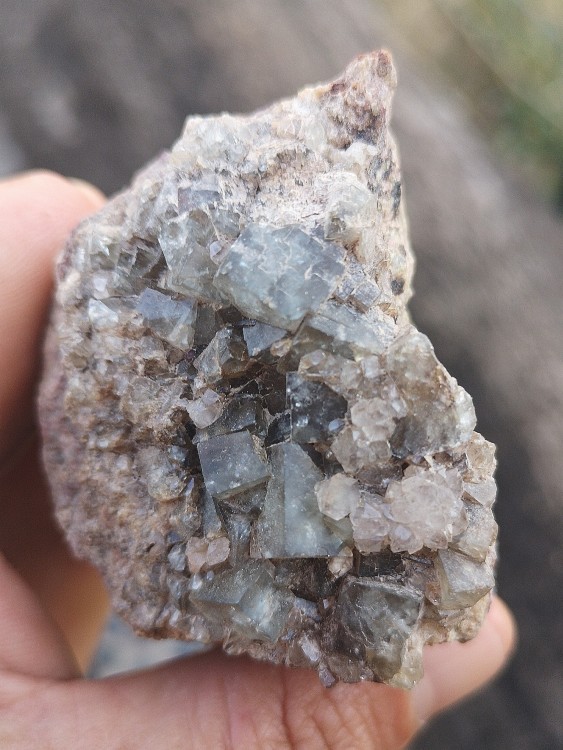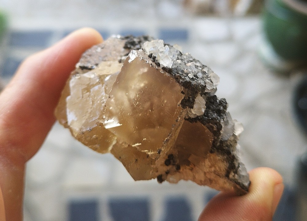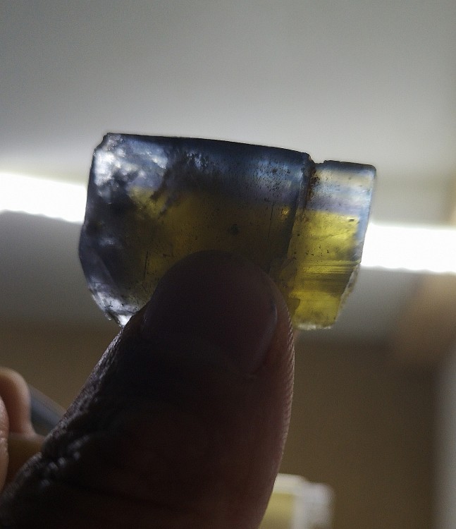Ici il y a de petite Fluorite qui paraissent blanche en vitrine et un fois mis à la lumière du soleil sont bien rose. Il y aurait donc un réaction aux uv du soleil, et pourtant quand on les passe à la lampe uv elles réagissent mais en bleu. -
