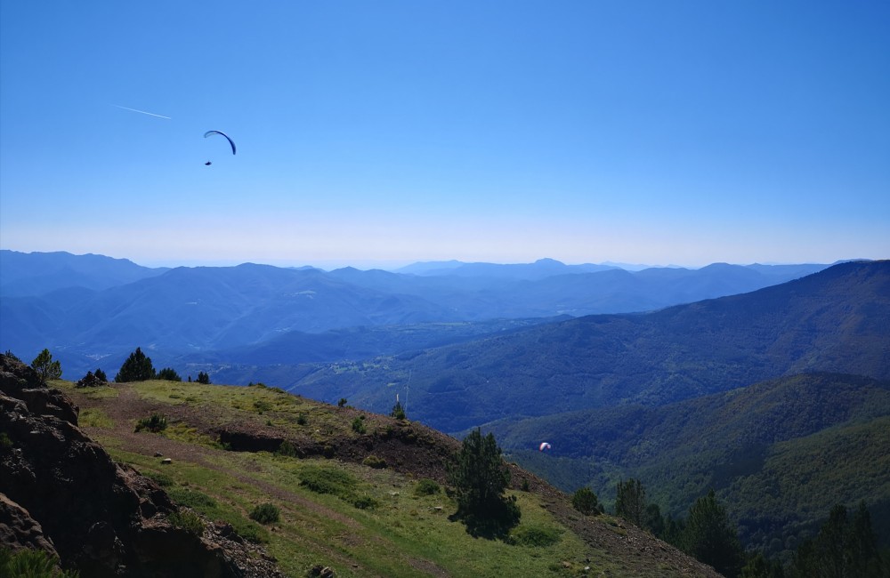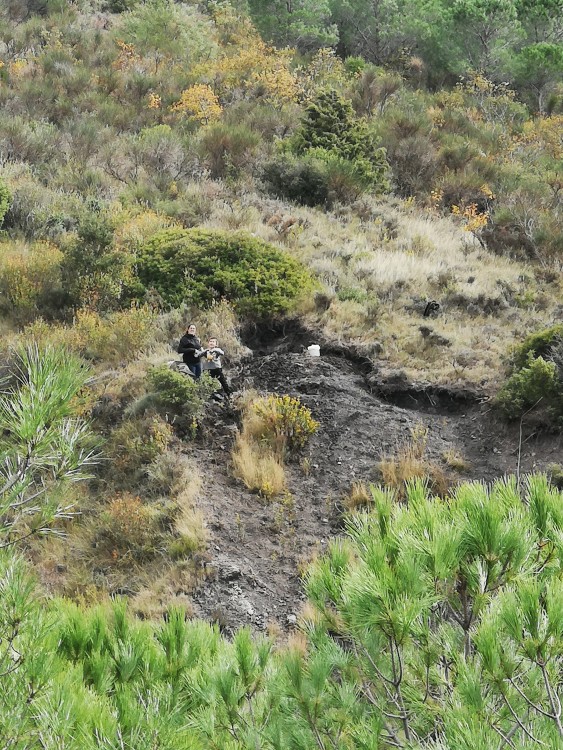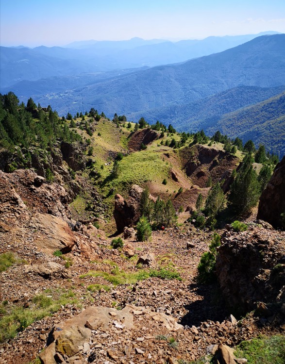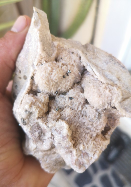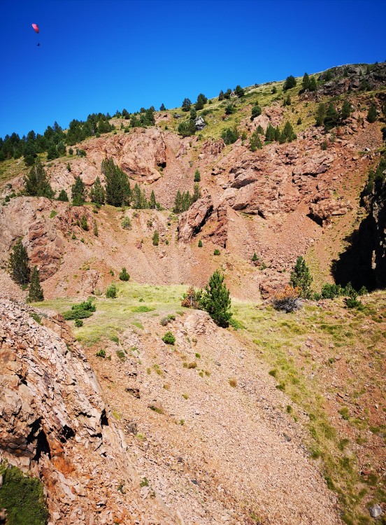 Bonsoir oui il l'est et ses 2 vitrines pleines en témoignent lol Bon après ces vacances calmes et reposantes pour la rentrée on a pris un peu de hauteur dans le 66 avec une nouvelle sortie à batère. Mais cette fois ci pas de deblai on va monter au niveau de la carrière à ciel ouvert au dessus de la dernière galerie. Accompagnés par les vaches au debut En plus cette fois ci le ciel est dégagé et rien que pour la vu la balade vaut le coup Une fois arrivé sur site nous commençons à fouiller un peut, on se mets à trouver quelques goethites sympa. Et je pense un peu d'hematite On change de coin et la en levant la tête nous nous apercevons que il n'y a pas que les aigles qui nous survolent, ils ont de nouveaux copains de jeux, le spectacle est superbe ce balai en les oiseaux et les voiles. Puis nous nous remettons à fouiller et en faisant tomber quelques cailloux des parois je tombe sur une petite poche sympa de calcites. Puis un peu plus haut une segonde fente avec goethite et calcite qui m'a fait plaisir car elle était tout en haut, j'ai pas grimper pour rien Et puis la vue de la haut... Après un premier tri et un casse croûte on decise de casser 2 ou 3 gros blocs sur le bas et la autre une découverte sympa, un cristal recouvert de petit cristaux de calcite très brillant comme de petits quartz, vu la forme je pensais à un cristal de calcite isolé sauf que dans cette petite geodes les copains plus petits autour qui ont cassés lors de l'extraction étaient complètement ferreux à l'intérieur Si quelqu'un a un avis sur cette bête innommable lol Et la on essaye de prévoir notre prochaine sortie car on devait aller au salon de tournefeuille mais il est annulé. Du coup on devrait aller prospecter mais on savait pas trop où ce coup ci, j'avais penser taquiner les calcites d'anduze mais au vu des commentaires ce n'est pas une sortie à faire en famille. Du coup peut être albas vu les dernières pluies mais on avait envie de faire un nouveau site quitte à faire un peu de route. Si l'un ou l'une d'entre vous a une proposition on est preneur, même en votre compagnie (on aime partager sur le terrain) tant qu'on reste à moins de 250, 300km de Perpignan ça devrait aller. Au plaisir de vous lire Maria Ludo et jeremy -