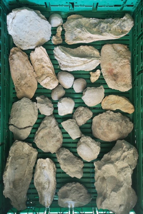 Bonjour à toutes et tous Après c'est 2 sites riches en petites trouvailles, la vitrine à Ludo arrivait à saturation, on décide donc d'aller lui en chercher une 2eme d'occasion dans l'aude. En regardant sur le net pour meubler le reste de la journée, je trouve un site à fossiles juste à côté, depuis le temps que Ludo voulait en trouver par lui-même. Direction loupian et son ancienne qui est devenu un très joli petit lac. On arrive sur place vers midi du coup on commence par un petit sandwich, puis on se mets à examiner les paroies, il ne nous faudra pas longtemps pour les trouver. Bivalves, huîtres, et par chance une dent de requin, et un os Après toutes ces découvertes en plein cagnard, on aura profité de l'eau bien claire et chaude pour faire un petit plouf en famille et se rafraîchir un peu. Reste plus qu'une étape à nos périples durant les grandes vacances, 2 jours dans l Hérault, à suivre ... -