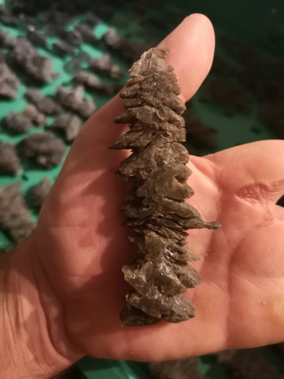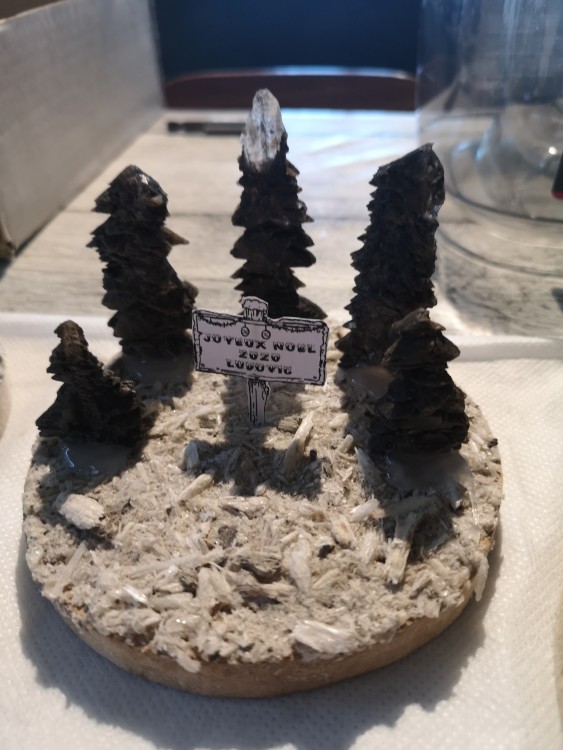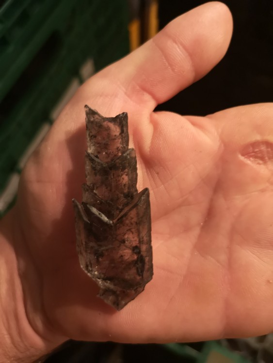 Bonjour à toutes et tous Par manque de temps et avec tous les soucis liée à ce satané virus je n'ai pas trop eu le temps de vous tenir au courant de nos sorties. Je vais remédier à cela Pour commencer dans la série on lâche rien tant qu'on a pas trouvé après les tetraedrite de loiras on c'est replongé dans les gypses de albas Et cette fois ci on les aura eu nos beaux gypses Nous avons passer une journée et demi en tout sur 2 week-end mais on ne le regrette pas, la persévérance paye. Et celui ci qui malheureusement du aux mouvement du sol avait cassé depuis bien longtemps il ne restait plus d'une pointe sur les 3 d'origine. Et la cerise sur le gâteau fut la dernière demi journée pour Ludo, il a trouver seul LE gypse, nous étions en tout 3 ou 4 à être passé devant sans le voir et c'est lui qui qui l'a vu, il est même venu me chercher par peur de l'extraire, je suis donc allé l'aider et je n'en suis pas revenu, je soulève lla Marne très délicatement en y allant de très loin et quand je le vois bouger je lui laisse sortir à la main. Il était comme un fou et très fier et ça se comprend Après petite demi-journée à padern sur la route du retour avec quelques micro azurite sympa, quelques malachite et une jolie petite barite Puis une petite sortie juste avant le confinement à la recherche de grenat et quartzs dans le 66 Puis on fut confiné, commence alors une longue periode forcée de tri et de nettoyage. Arrive enfin le fameux week-end des 20km, comme de par hasard vendredi, samedi flotte, dimanche le soleil pointe le bout de son nez et avec lui le petit prospecteur, bon 20km vu où on habite ça nous laisse que 2 sites, et ce fut le boulou. Superbe journée de délivrance avec un temps radieu et quelques fluo à la clé On c'est fait une jolie place bien propre, maintenant reste plus qu'à les Nettoyer. Et ce week-end pas de sortie mais une activité de Noël autour des minéraux de albas, Ludo à préparé des petits cadeaux de Noël pour les papy mamies et quelques petits chanceux. Gypse fibreu blanc et gypse sapin de Albas 11 Voila ce fut un peu long mais j'ai fait le tour de nos dernières sorties et trouvailles. À très bientôt pour d'autres sorties Ps: si la météo et le confinement le permettent prochaine sortie les 28, 29 décembre, on changera de département si on y a le droit, reste à déterminer où, Hérault, gard, ou Tarn. On est ouvert aux propositions !!! -
