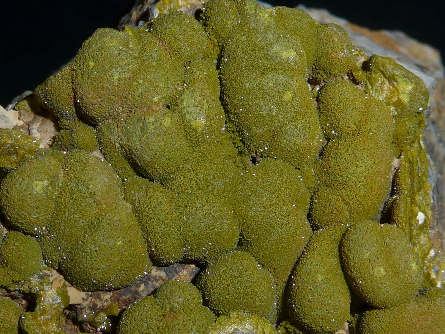 Cristaux centimétriques d'almandin sur quartz gris et feldspath. Le Brugeron, Puy de Dôme. Pyromorphite, Villevieille, La Goutelle, Puy de Dôme. -