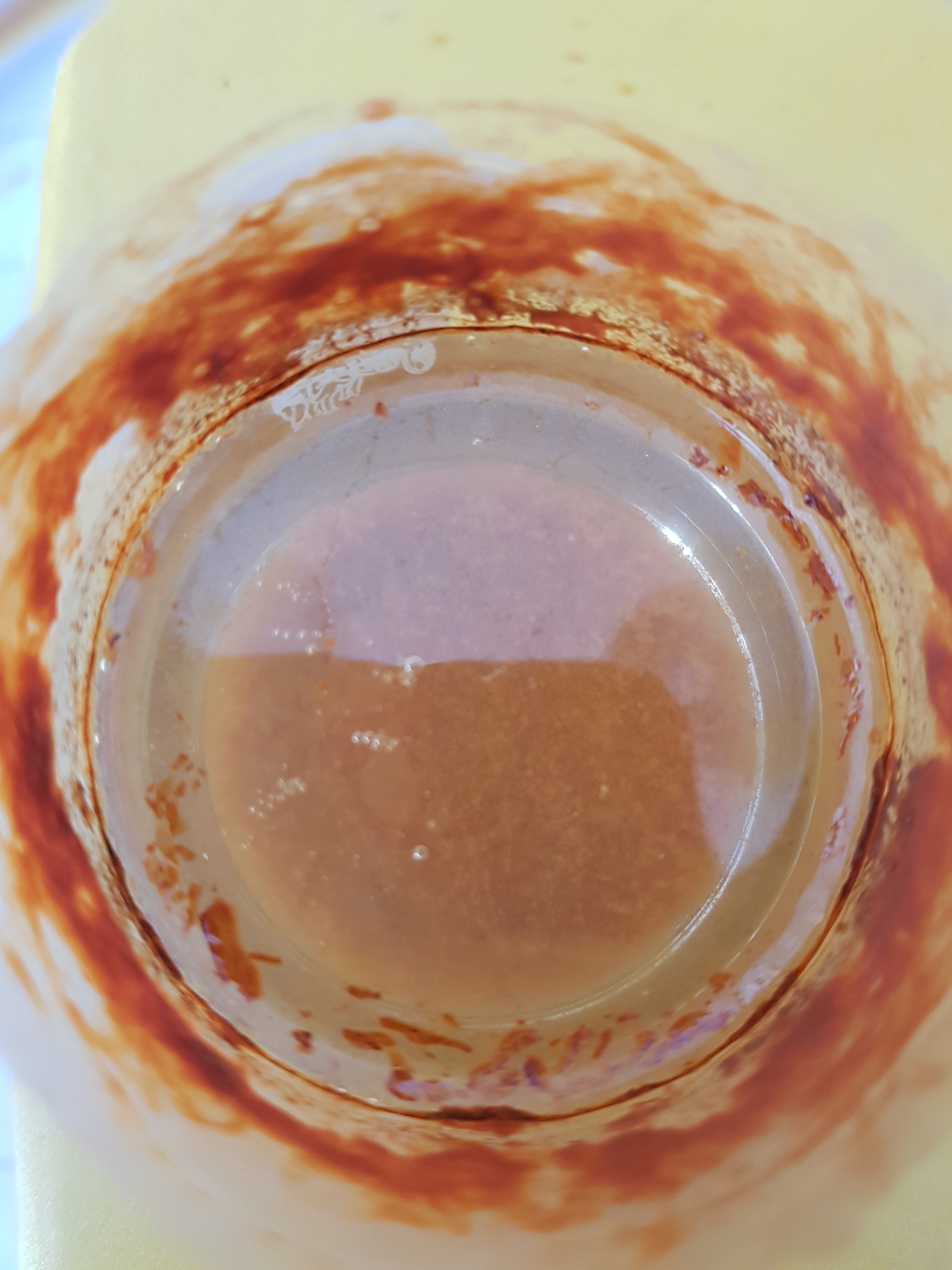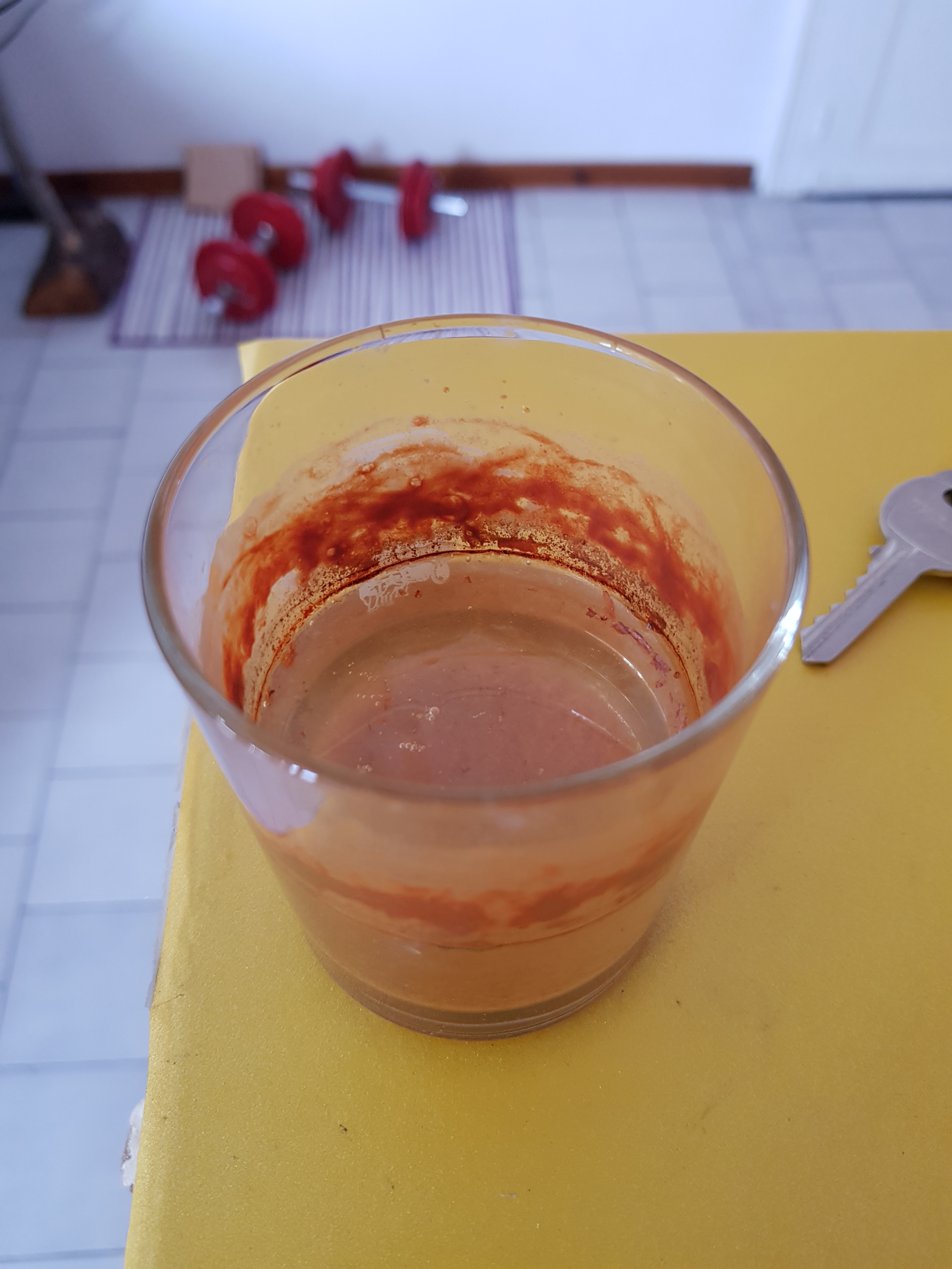 J ai pas les mots c est ouaouhh j ai pris des cours de chimie merci beaucoup j ai sauvegarder toutes ces infos car tu l as deviné c est pas ma spécialité mais ca m intéresse énormément les mété me facile et leurs composition encore plus ...je sais pas pourquoi.. Mais voilà mon compte rendu... Composition de mon acide à 21k inconnu ( labo particulier ) Dissolution en concentration inconnu = résultat incertain Cette solution mise dans deux récipient différents Un trempage de la tranche = surnageant brun Trampage du talon = surnageant rouge ( photo) ? La température du mélange n était pas la même, ? Les proportions de bicarbonate étaient differente ? =aucune certitude sur le résultat Plus j écris et plus j ai honte ...désolé tu dois être fou , c est avec passion que j ai voulu tester M1is clairement c est pas a prendre à la légère si on veut un résultat fiable La tranche a comme même révélé les même traces du 1 la température lors de la coupe Qui a sans doute altéré la structure interne Bref encore merci a toi pour ce temps passé et je confirme n édite pas a partagé tes connaissances s en sort tous grandi Il est curieux cet acier..dans la boîte " indéterminé !"
