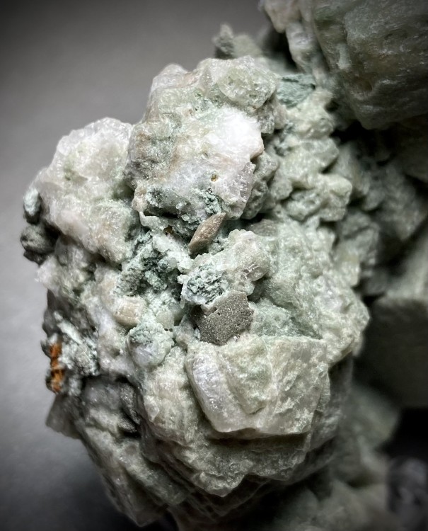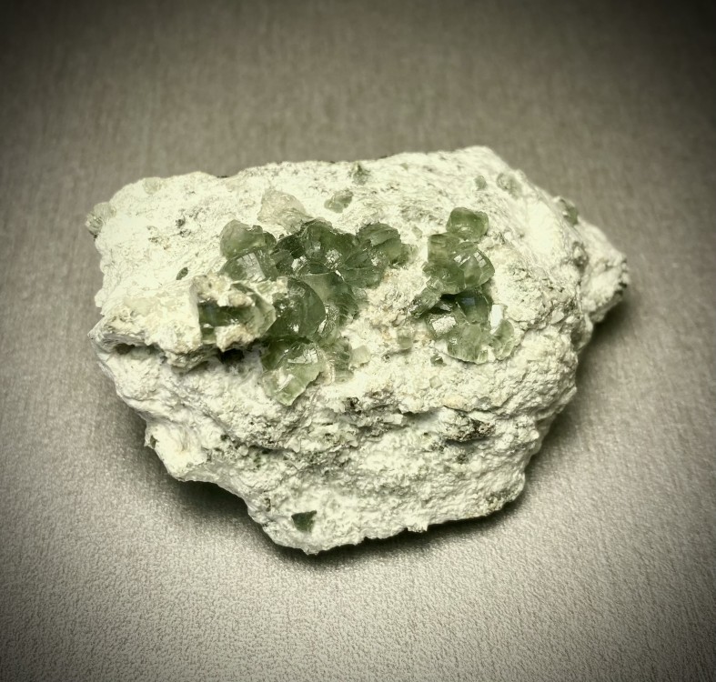 Bonsoir, Pour varier les plaisirs : un flottant de calcite et chlorite de la fosse de font Poulain - Maronne- avec « Spinthères » (variété de sphène chloriteux appélé ainsi par Haüy « Lacroix tome 2 page 240 ») Forestfly