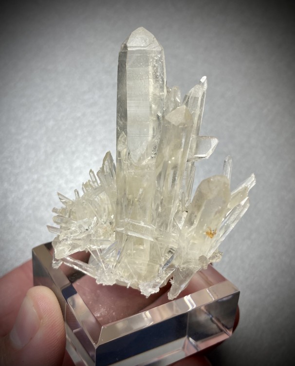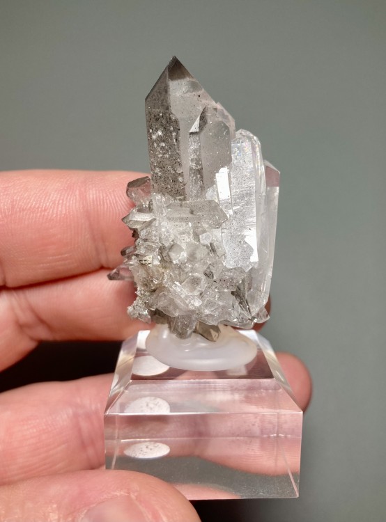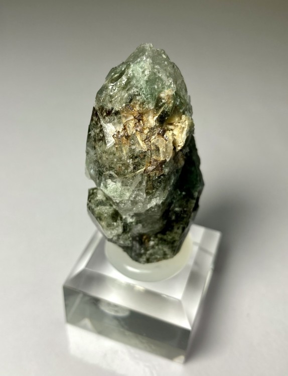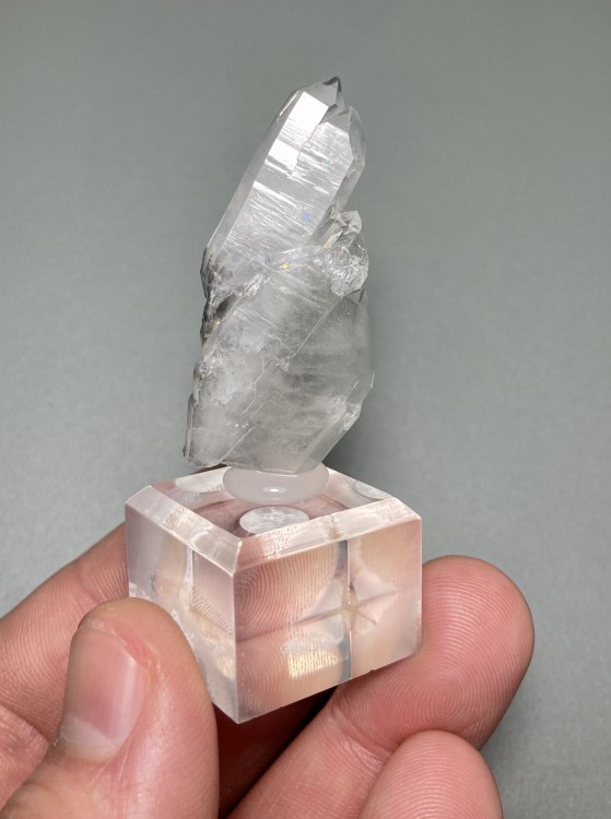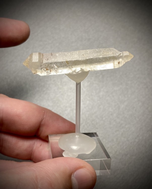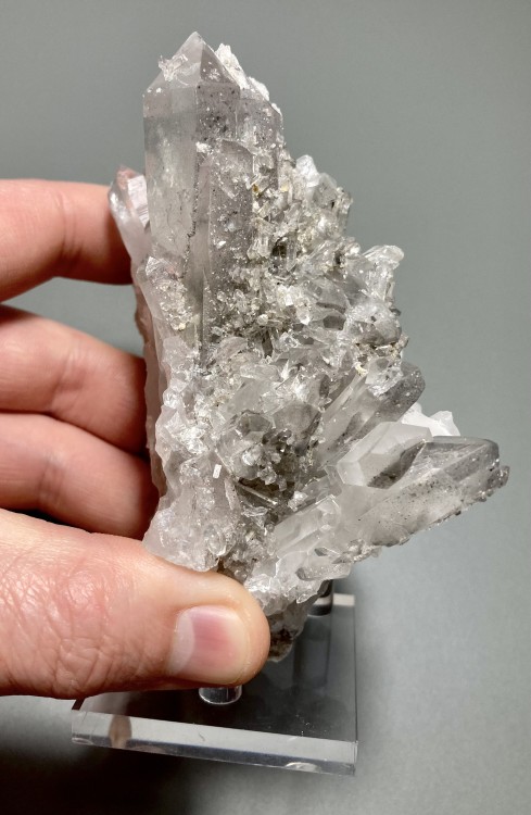 Bonjour, Quartz avec inclusions de rutile et fantômes de chlorite, 4,6 x 2,1 cm. (La fée, les Deux-Alpes, Oisans) Forestfly