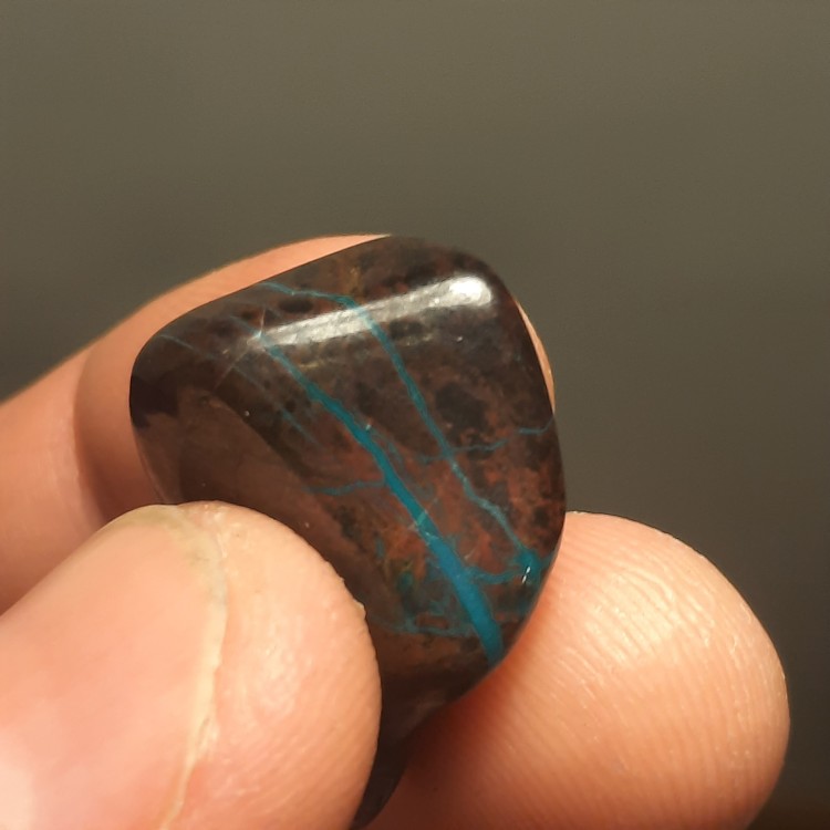 Bonsoir, J'ai perdu le nom de ce spécimen (enfin mon papier est chez mes parents que je retrouverai dans quelques semaines). En attendant, avez-vous des idées du minéral poli? C'est un minéral peu commun qui n'avait pas son nom dans mon livre de minéralogie. Merci de votre éclairage! D'ici fin janvier, je vous donnerai au pire la réponse (avec le gagnant😁*). Etrange ses veines bleues qui se chevauchent (et magnifique). Bien plus beau en vrai. *Il n'y a que l'honneur a gagner Place aux photos !