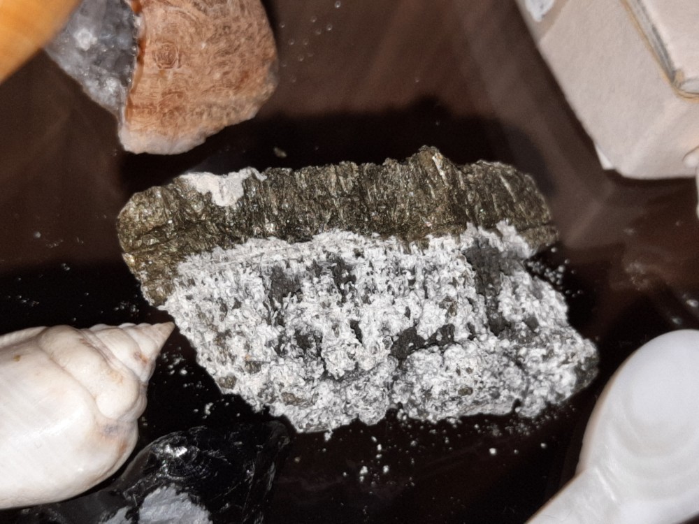 Bonsoir, J'ai récolté il y a un an environ une pierre vers Pontréan qui s'est couvert d'une croute blanchâtre surtout sur la moitié inférieure avec une odeur à moitié métallique et un peu irritant. Avez-vous des minéraux ayant ce problème ? Merci