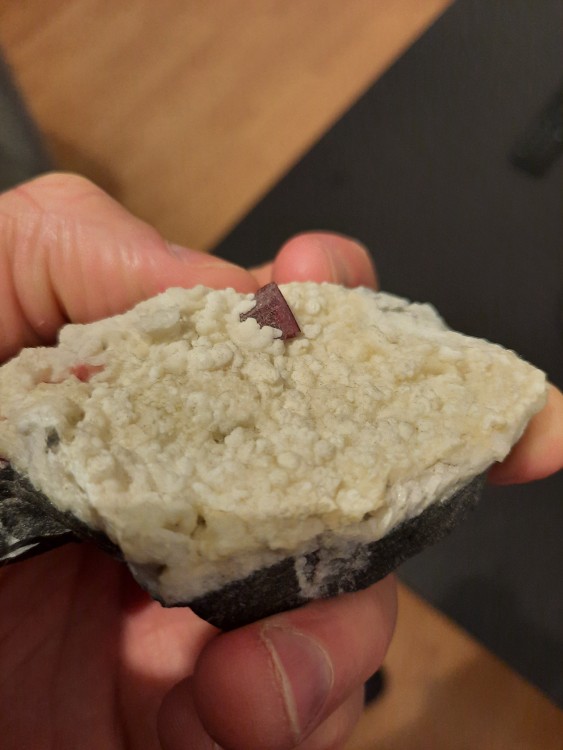 Bonjour, Chez Alexandre Import j'avais acheté ce minéral mais j'ai quelques doutes sur le fait que cela soit de la cuprite (pas de vert autour ou de cuivre et surtout ressemblance avec des échantillons de cinabre). La partie blanche est fluorescente. Pensez-vous que cela est bien de la cuprite? J'étais dans sa boutique il y a de bons avis mais c'était un peu le basard et le vendeur préfère vendre ce qui se vends le plus plutôt que des pierres rares et ne me semble pas géologue de formation. En vous remerciant par avance pour votre retour. Acheté au prix d'un SMIC journalier (à peu près).