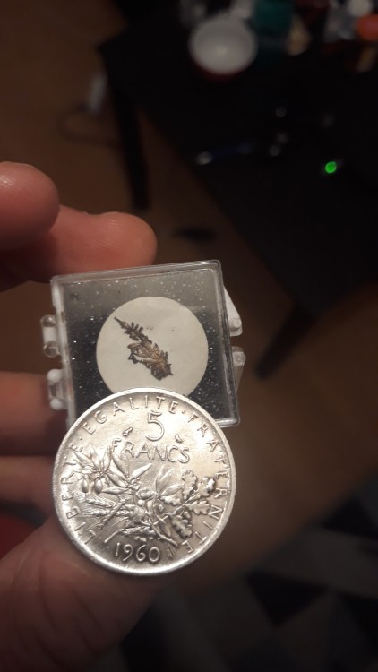 Bonjour, modeste jolie agrégat d'argent natif provenant de Mexique. Petit comparé à cette célèbre pièce en argent. Cette image (dessous) dyscrasite + Ag natif et acanthite. -