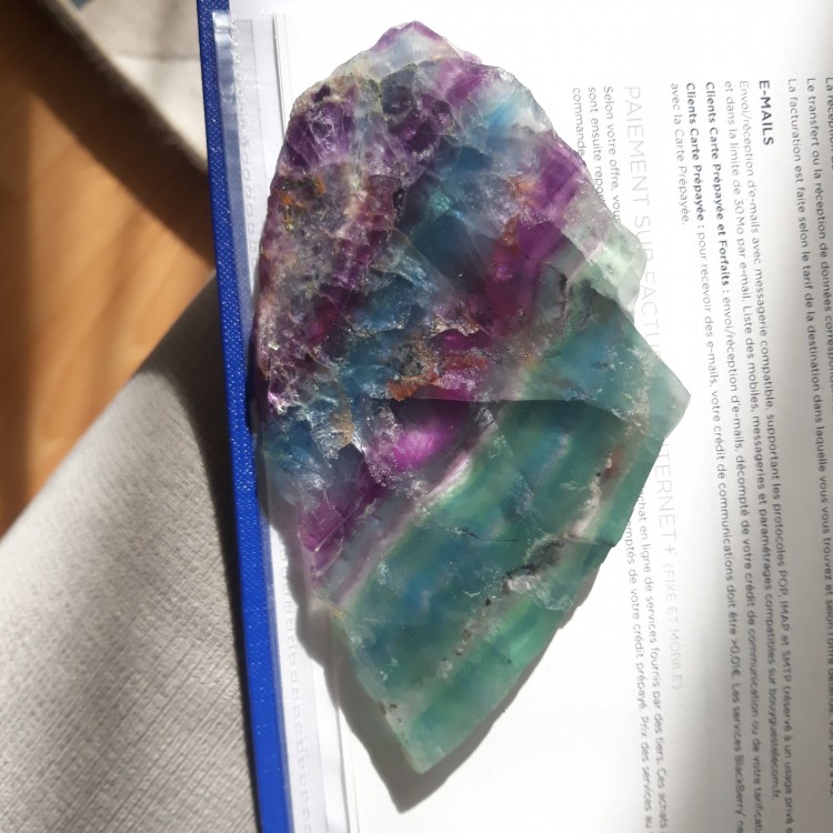Celle-ci vient de chine. Je pensais que les fluorines étaient colorés par différentes terres rares qui se trouvent presque exclusivement en chine (hormis l'or, l'argent et le platine dont il y a des mines en Afrique, URSS, US et Australie). Magnifique mais assez tendre, trop pour l'utiliser dans des support de tables. Tu pourras me dire ton site car j'irai bien piocher dedans!