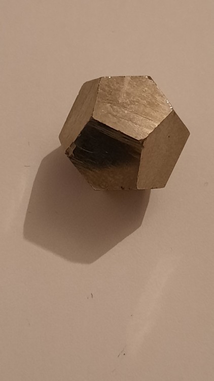 J'ai croisé un autre passionné qui se demandait si c'était de la skutterudite. Je continue mes recherches cependant. Il y a des milliers de minéraux sur Terre et donc ça peut être un minéral moins connu. Pour le minéral incolore qui l'accompagne, quasi sûr à 100% cristal de roche (quartz). J'ai d'ailleurs retrouvé un cristal de pyrite ressemblant un peu mais à face pentagonale et non hexagonale. La pyrite que je vais vous montrer à douze faces identiques avec une nuance jaunâtre (moins que le cuivre jaune et sans ressembler à l'or). Dodécaèdre. Le trait est noir également. On note des stri des croissances présents sur czt échantillons (et non sur celui que j'ai mis dans la première photo). Les stris permettent d'authentifier des vrais cristaux (on ne fait pour les cristaux de quartz vs les tailles en cristaux) Cuboctaèdre pyrite avec cobalt ? Je ne dis pas que la pyrite est impossible mais j'ai encore quelques doute. N'empêche que sur geowiki la couleur est toujours avec une nuance de jaune et non grise. Là sur le spécimen du premier post de ce topic, aucune nuance jaunâtre. La photo sur mindat fait penser un peu mais il y a des stri de croissances et le minéral est à tendance jaunâtre les hexagones moins bien formé mais on retrouve les carrés entre les formes hexagonoides. https://www.mindat.org/photo-942971.html Le minéral gris laisse une trace noir-grisâtre sur la feuille mais pas mon dodecaedre de pyrite (photo de ce post). Le trait de la pyrite n'est pas jaune (tout comme l'hématite n'est pas grise). J'avais soupçonné l'hématite.