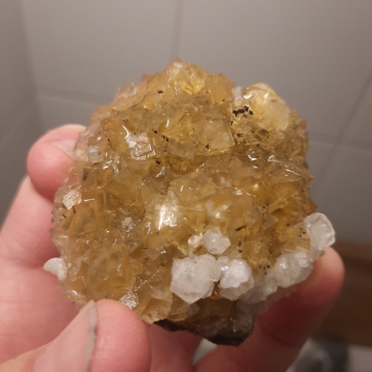 Moi aussi j'aimerai bien les boir ! Je parie que ca doit être fluorescent aux UV car ça fait penser au fluo du stabylo. De toute façon la fluorine est fluorescente par nature ; ce n'est pas pour rien son nom Une fluorine à moi :) -