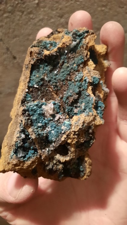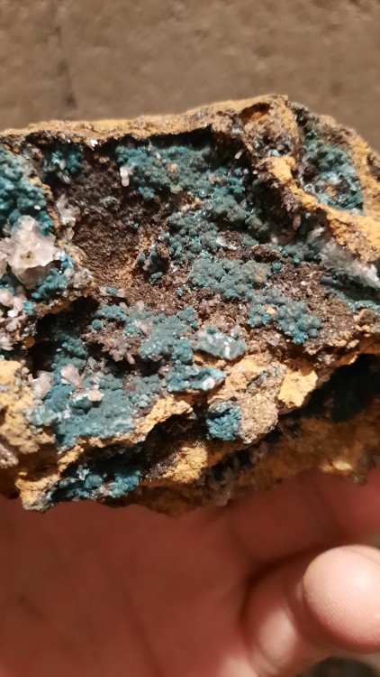 Merci ! 😀 Je suppose qu'il doit parfois être associé à l'hemimorphite. Nota : avec un peu d'HCl ça mousse en se dissolvant sur un petit extrait du spécimen.