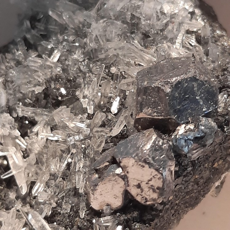 Il y a quelques années, j'étais allé sur le site de Pont-Péan, une ancienne mine de plomb. J'avais trouvé cela sans savoir vraiment ce que c'était : Aujourd'hui, je confirme que le deuxième spécimen est bien une marcassite mais je suis surpris qu'à la fois la )partie couleur bronze et coueleur noire (il y avait deux couches) ce soient dégradés de la même façon, cela se met en poudre. Cristaux acide sulfurique blanc? Sinon mon deuxième spécimen ici est resté intact (ci-dessous), le trait est marron...hématite? mais pas aimanté Merci ! -