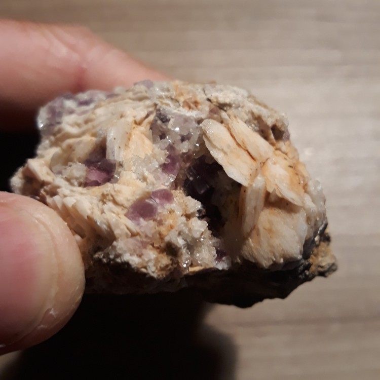 Bonsoir, Ces cristaux en crête de coq me font vachement penser à ma pierre dont je pensais que cela était avec améthyste avant qu'une personne me dise que c'est de la fluorine avec barytine. Cette forme de crête de coq est si caractéristique. -