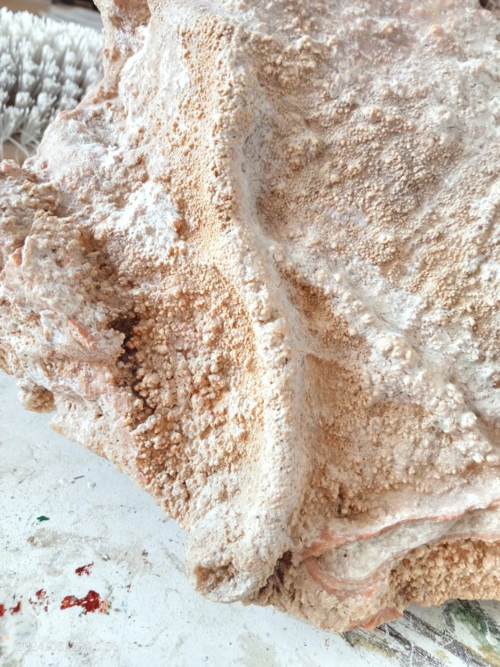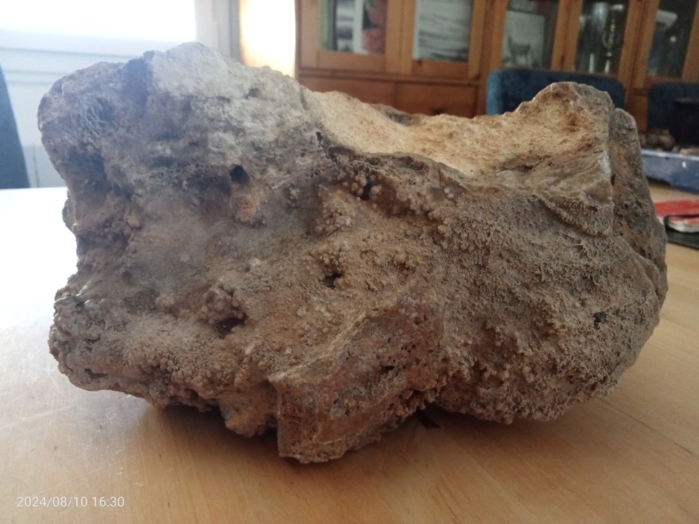 La pierre où je l'est trouvé se trouve dans un endroit aride semi désertique. Il y avait des ancolique,isastrea. Bermardiana,.cyanobacteries et autres. Il réagit au test de l'acide.