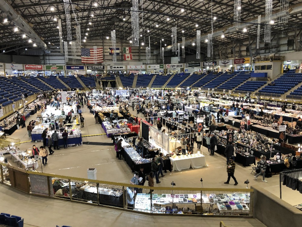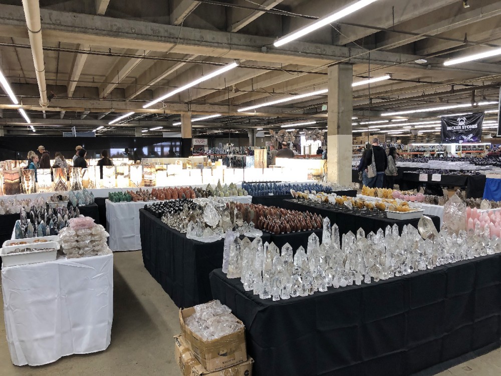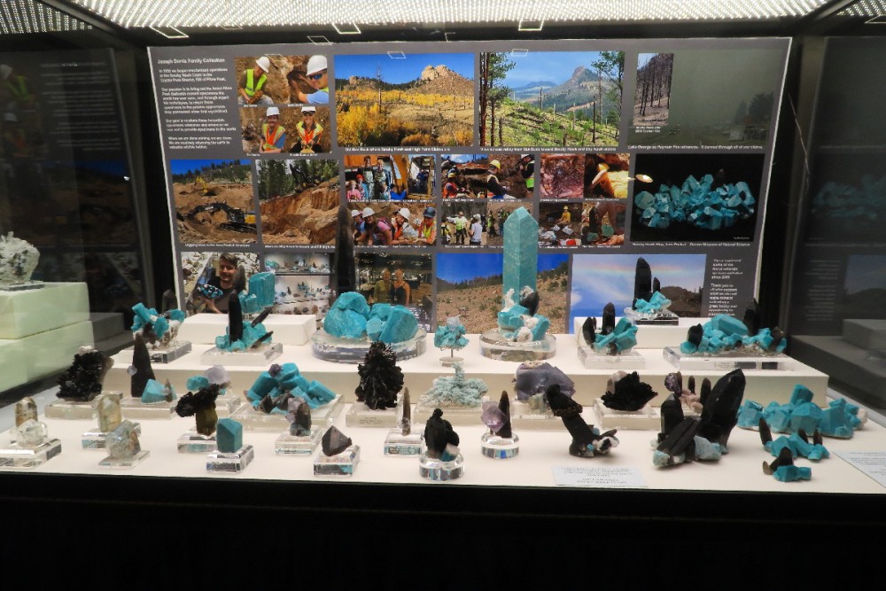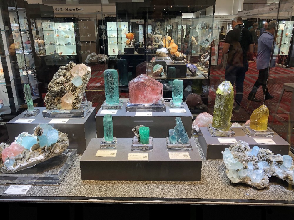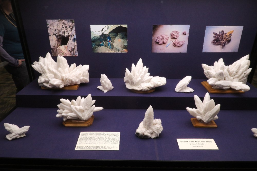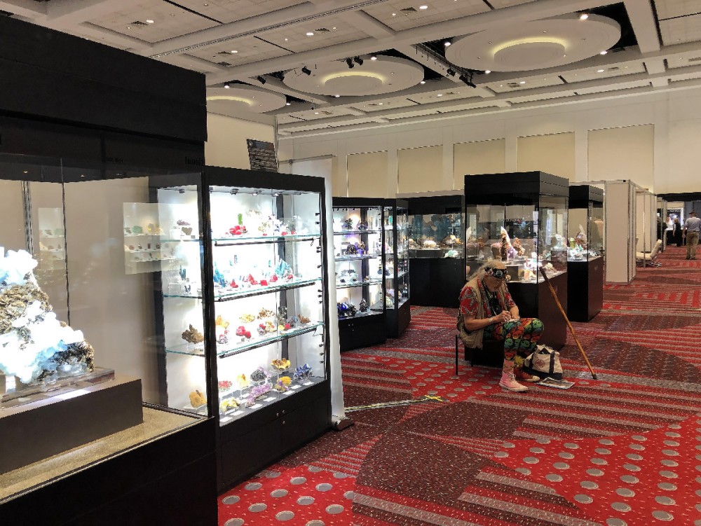 Bonjour Pour compléter le reportage d'Eric, voici quelques photos complémentaire de ce Show, et des autres. Au HardRock Summit, il y a une grande salle avec le top du top, et les prix s'en ressentent (par exemple, je n'ai pas vu dans cette salle une seule belle fluo du Burc en dessous de 15K, comme on dit ici ...) Voici une vue partielle de la salle, avec assis au premier plan un habitué des salons américains, facilement reconnaissable à ses chaussettes dépareillées (?!) Évidemment on en prend plein les yeux : Il y a une autre salle, plus modeste, qui combine vendeurs (des locaux et des prospecteurs) et des vitrines d'exposition. On y retrouve la famille Dorris (qui recherche des Amazonites, rendue célèbre avec la série TV Prospectors) : Mais aussi de belles vitrines avec des minéraux du Colorado Les Quartz blancs des niveaux à calcaires d'Ouray : Une superbe fluo avec Ferbérite provenant d'une mine de molybdène, au nord de Leadville : En marge de ces expo/ventes, toujours au HardRock Summit, quelques expositions intéressantes, notamment une sur les ors natifs. Il y a notamment un échantillon d'or, considéré comme l'un des plus beaux au monde. Ca s'avère être un monocrystal, d'une quinzaine de cm de longueur et il provient de la mine Ground Hog, dans le conté de Gilman, Colorado : Si on cherche du poids, voici un échantillon de Californie, Mine Oriental (Sierra County), qui a nécessité plus de 400 h de travail pour dégager l'or et mettre en avant une partie des 4,2 kg d'or qu'elle contient ... Mais, nous autres français ne sommes pas oubliés avec cette pépite ardéchoise (haut lieu de la minéralogie et des minéralogistes ;-)) en provenance des Avols. Autre lieu, autre monde, nettement moins "high end" (bien que j'y ai vu de très très belles vana de la trouvaille de 2021 chez les marocains), au National Western Complex. Des milliers et des milliers de mètres carrés de pierres taillées, polies, bijoux, et quelques minéraux au milieu. Une taille inimaginable, plusieurs fois Munich. Vu les produits à la vente, tout Denver était à ce show (entrée gratuite en plus), mais difficile de satisfaire le minéralogiste ... Quelques vues de cet endroit qui avait du accueillir auparavant un rassemblement équestre, étant donné les odeurs dans les salles du rez de chaussée. Même le stadium est rempli (en haut et en bas) : -