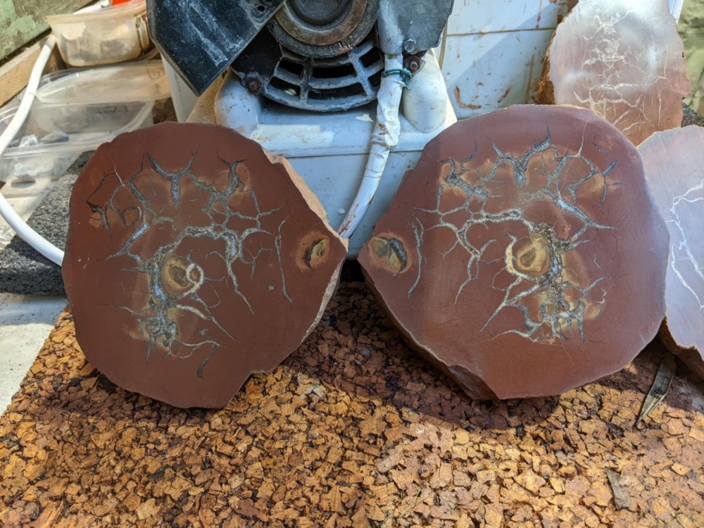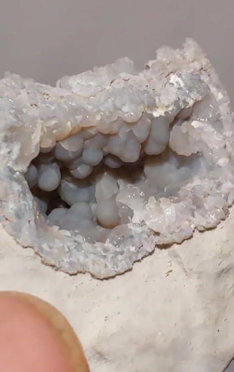 Bonjour ; Je suis curieux : au contact d une bauxite et d'un calcaire argileux je trouves ces poches ressemblants beaucoup à des genres de vacuoles ...., formées en grès ( j'en trouve des poches de poussière) jaune très dur. Quelqu pourrait il me donner l explication de ces formations? Et les fantômes et la couleur jaune des calcites sont ils le grès? Merci caillouteusement 20201105_141827.mp4