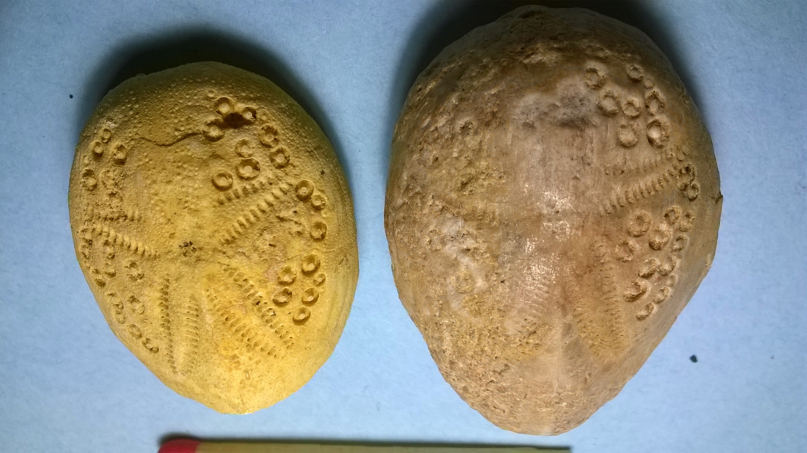 je pense que Nucleotites, c'est le n°22 mais pas sûr. Heliophara, manifestement le16. Collyrites doit être le 15. Par contre l'oursin de Pizieux, et celui du finistère, aucune idée...