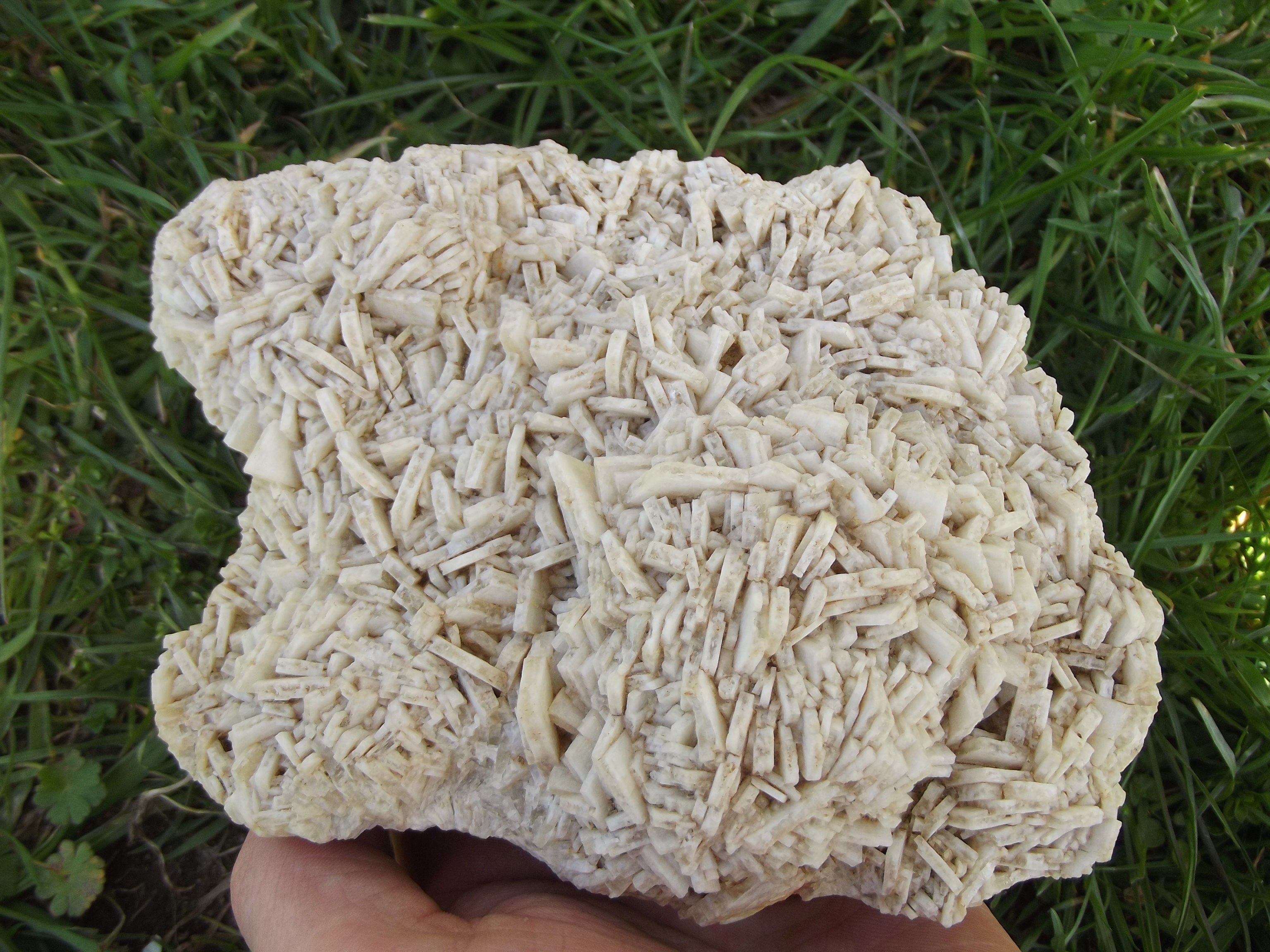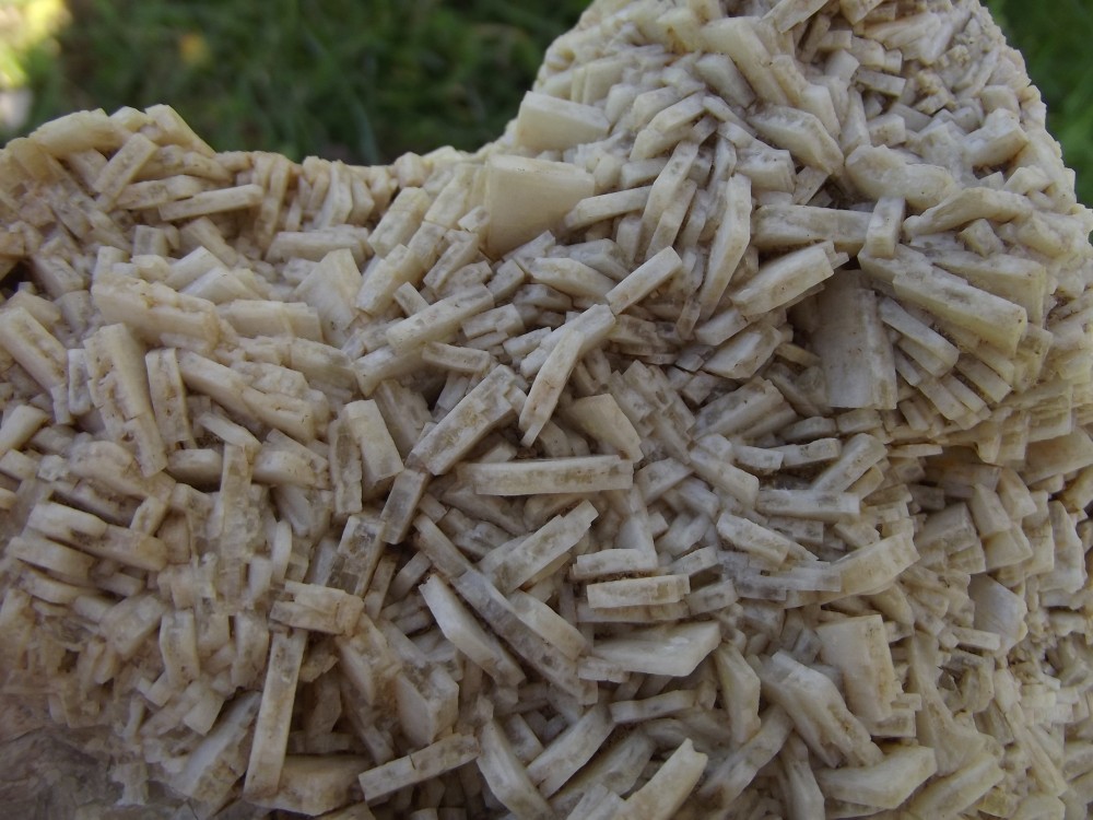 Pour finir, une baryte très atypique des VT. Il s'agit d'un baryte blanc crème en petites crêtes (qui évoque celle de Cuzac), cette baryte est très fragile, presque pulvérulente. Elle est imprégnée de bitume. Cette baryte blanche recouvre des crêtes d'une baryte plus classique, qui elle est saine. Je ne sais pas si quelqu'un à déjà vu ce genre de baryte aux Malines. -