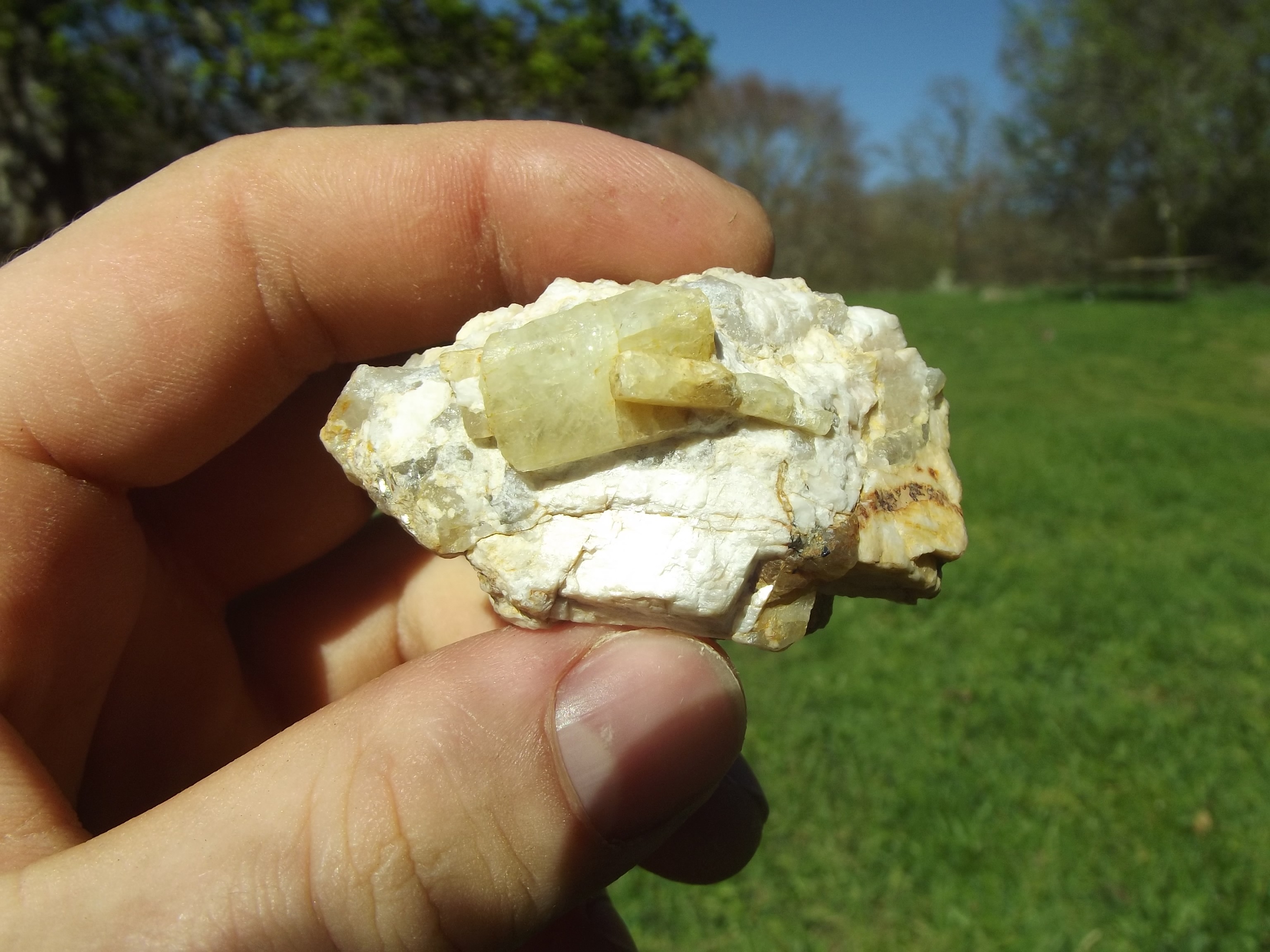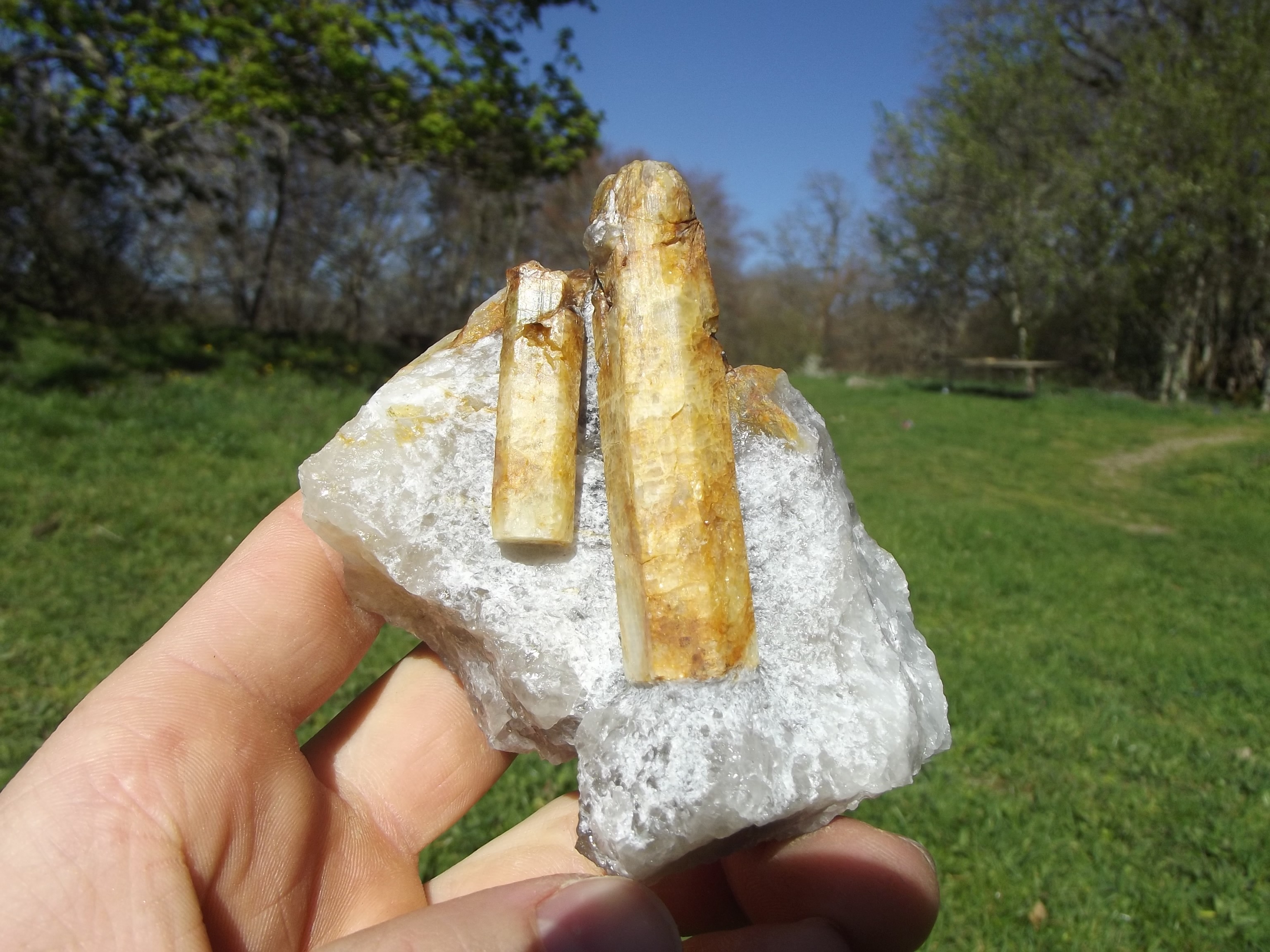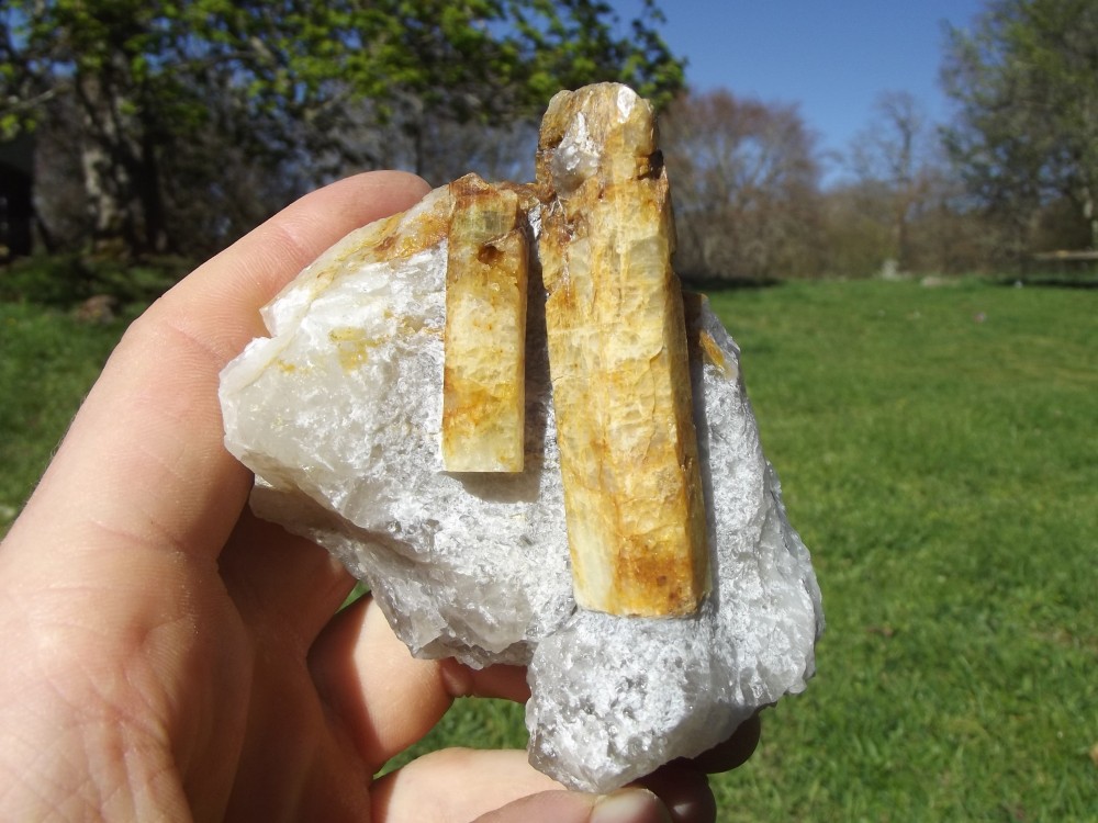 un petit béryl de belle qualité avec une magnifique terminaison Un autre trouvé récemment, malheureusement recollé. J'ai réussi à dégager la terminaison de celui de gauche, ce qui est extrêmement difficile a faire sans casse.