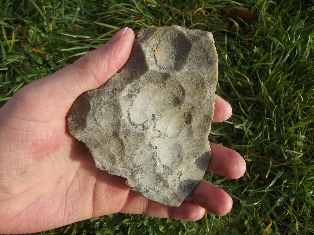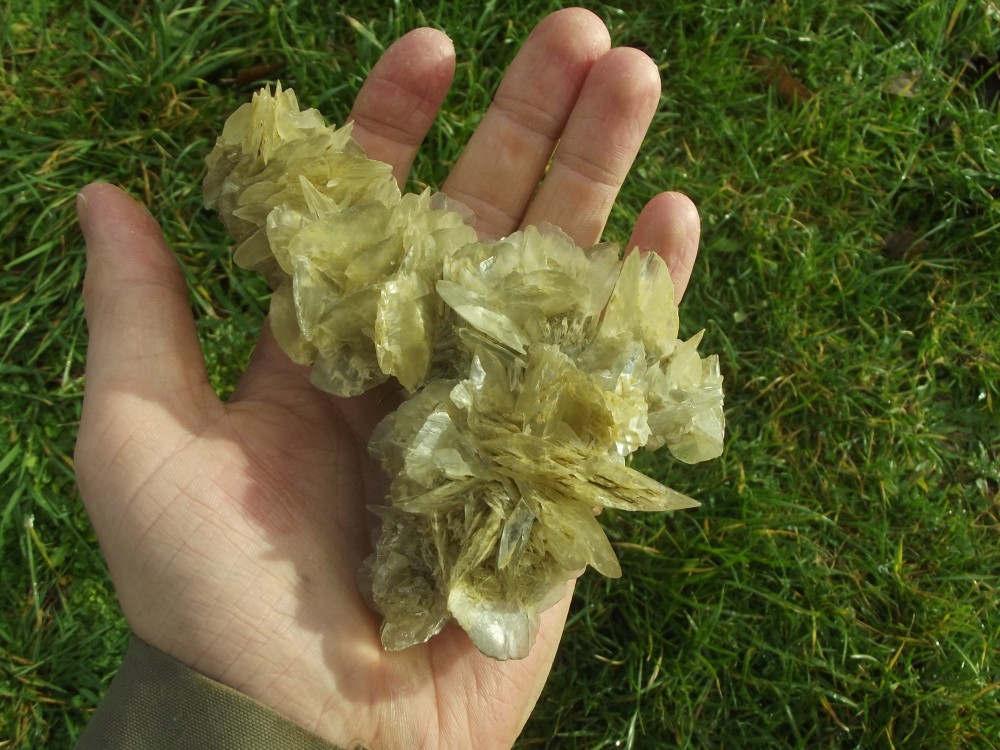 7. une grande plaque de calcite (une trentaine de cm) avec des micros inclusions de pyrites oxydées, sur quartz, trouvée en octobre 2022